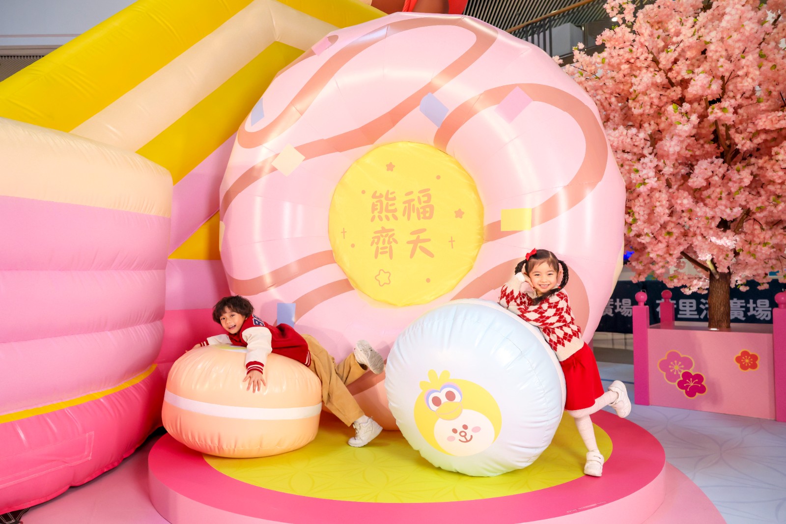 即日起至2月16日,商場1樓明星廣場設置6米高聯乘造型Sesame Street Elmo及LINE FRIENDS BROWN「盤滿缽滿糖果滑梯」,讓人感受由高空滑落的刺激快感,一滑而下到布滿糖果的巨型全盒,寓意來年順順利利、豐收連連。場內另一亮點「財源滾滾氹氹轉」會有愛吃餅乾的Cookie Monster和好友 Big Bird邀請坐上旋轉木馬,寓意新一年「轉」出財源滾滾的運氣。又或坐在「甜蜜光影庭園」內,與情人在可愛聯乘造型的CONY陪伴下,搭配粉紅夢幻的氛圍中拍照留念,祝願來年甜甜蜜蜜,幸福美滿。在「福星高照迎新春」Sesame Street成員以全新可愛造型,等待市民前來合照。「幸福綿綿甜甜圈」有3米高的甜甜圈,加上印有聯乘造型Big Bird和CONY大頭造型的粉色馬卡龍,氣氛溫馨滿瀉。