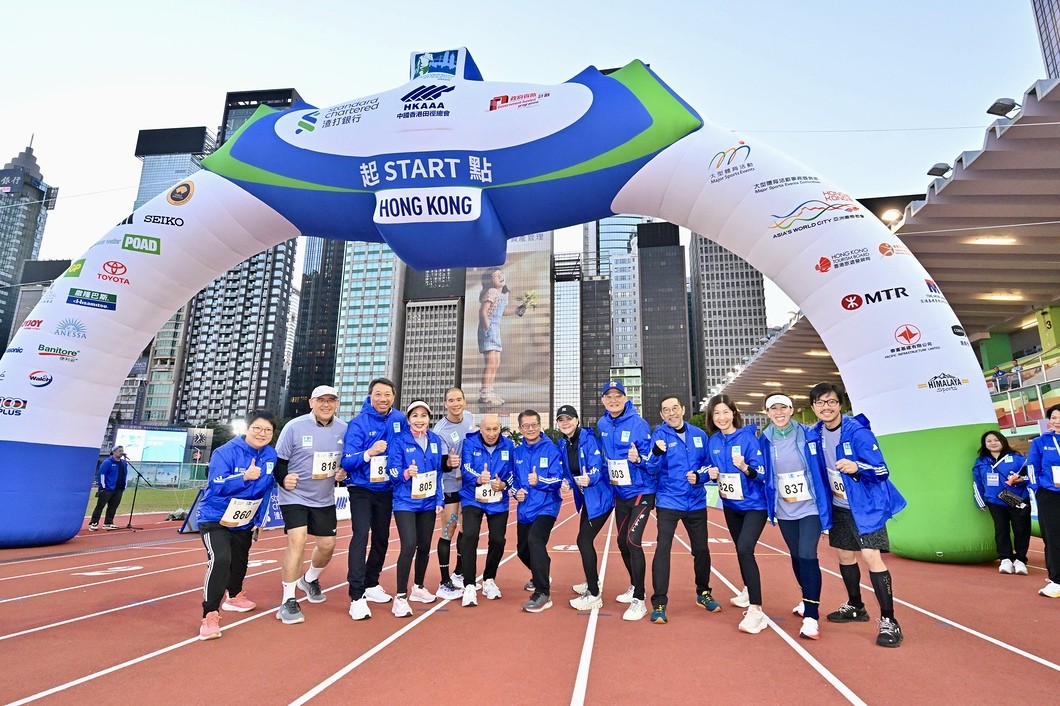 本港體育界的年度盛事之一、渣打香港馬拉松今早(9日)舉行,同場亦舉行「領袖盃」,財政司司長陳茂波等逾40名政商領袖及各界名人參賽。全程約兩公里的賽事在灣仔運動場起步,終點維多利亞公園,全程約2公里。