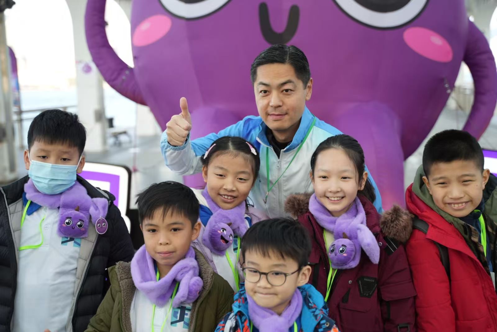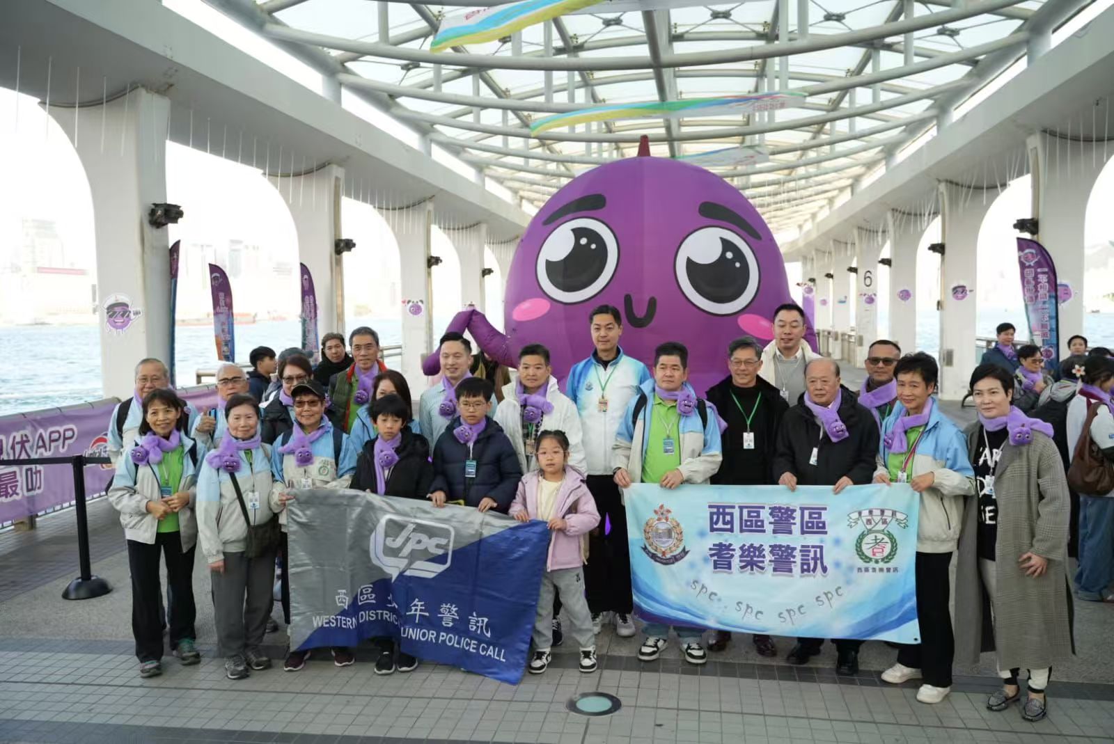 今日,中區警區舉行「提子閃閃耀維港」活動啟動禮,將中環10號碼頭化身成色彩繽紛「提子碼頭」,水上的士變身為「提子號」在維港上航行,將防騙訊息廣傳給全港市民。(記者 區天海)