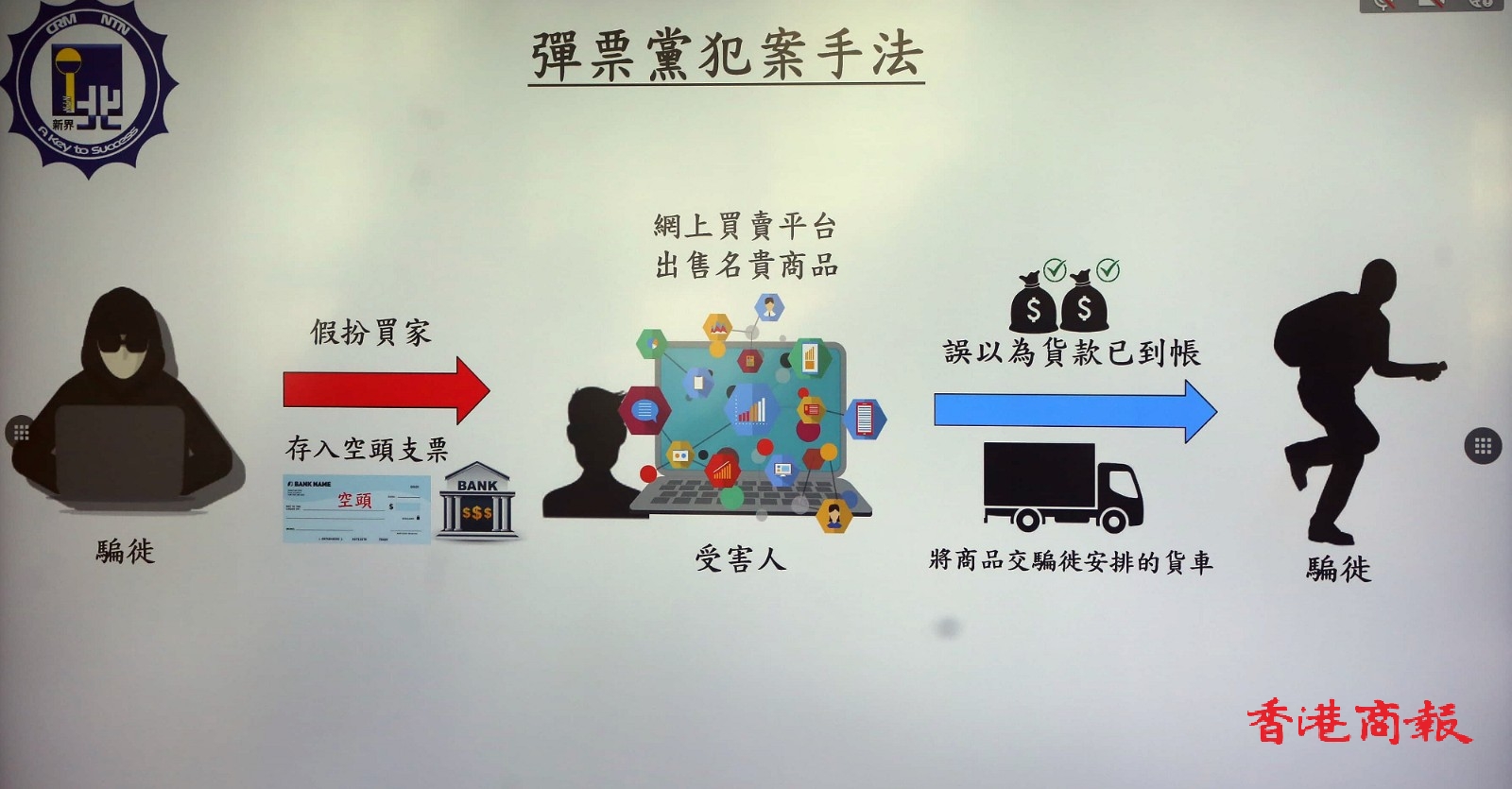 警方搗破一個「彈票黨」詐騙集團,在過去2日拘捕10人,涉嫌28宗網購詐騙案,失物約值46萬元。警方表示,騙徒在網上覷準目標物品,以空頭支票存款圖瞞天過海,並預約運輸公司司機代為收貨,逃避警方偵查;呼籲市民在網上出售物品,要切記檢查銀行存款中的「可用結餘」,證實已收款後才可交收貨物,避免讓騙徒有機可乘。