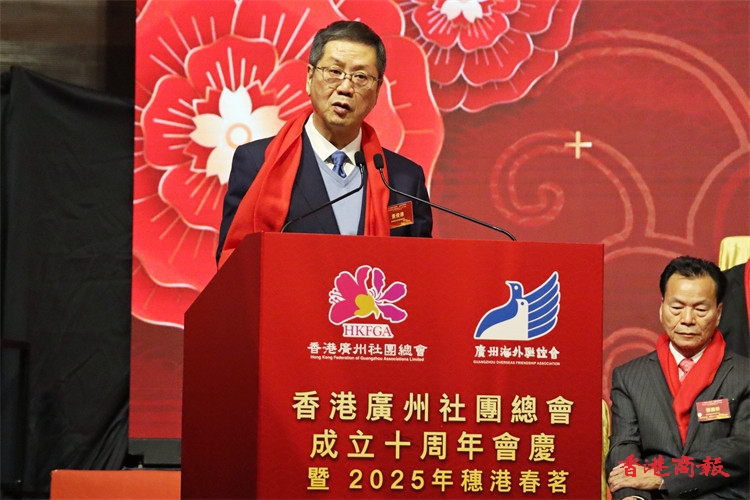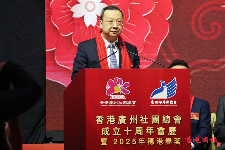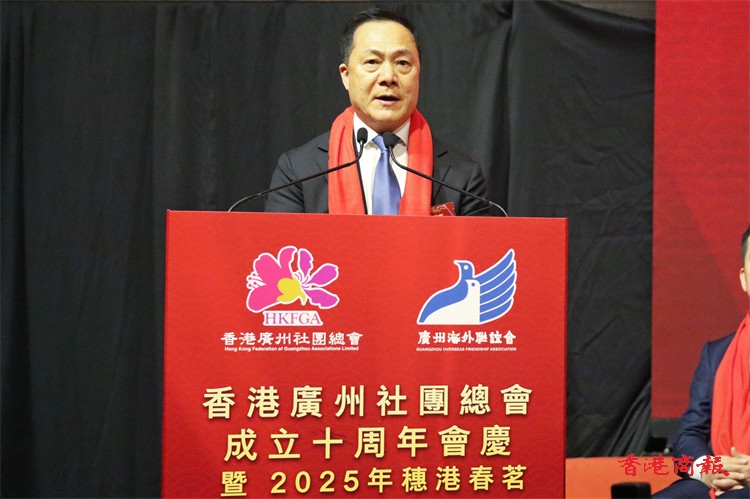 3月18日,廣州海外聯誼會、香港廣州社團總會在香港聯合舉辦「香港廣州社團總會成立十周年會慶暨2025年穗港春茗」。活動以「穗港同心 十載同行」為主題,回顧十年奮進歷程,共繪灣區合作藍圖,並正式啟動服務第十五屆全國運動會五大行動。香港特區行政長官李家超,香港中聯辦、香港特區政府有關部門及社團相關負責人,廣東省和廣州市有關部門負責人以及穗籍社團會員代表、各界友好社團代表、有關重要代表人士等700餘人參加。