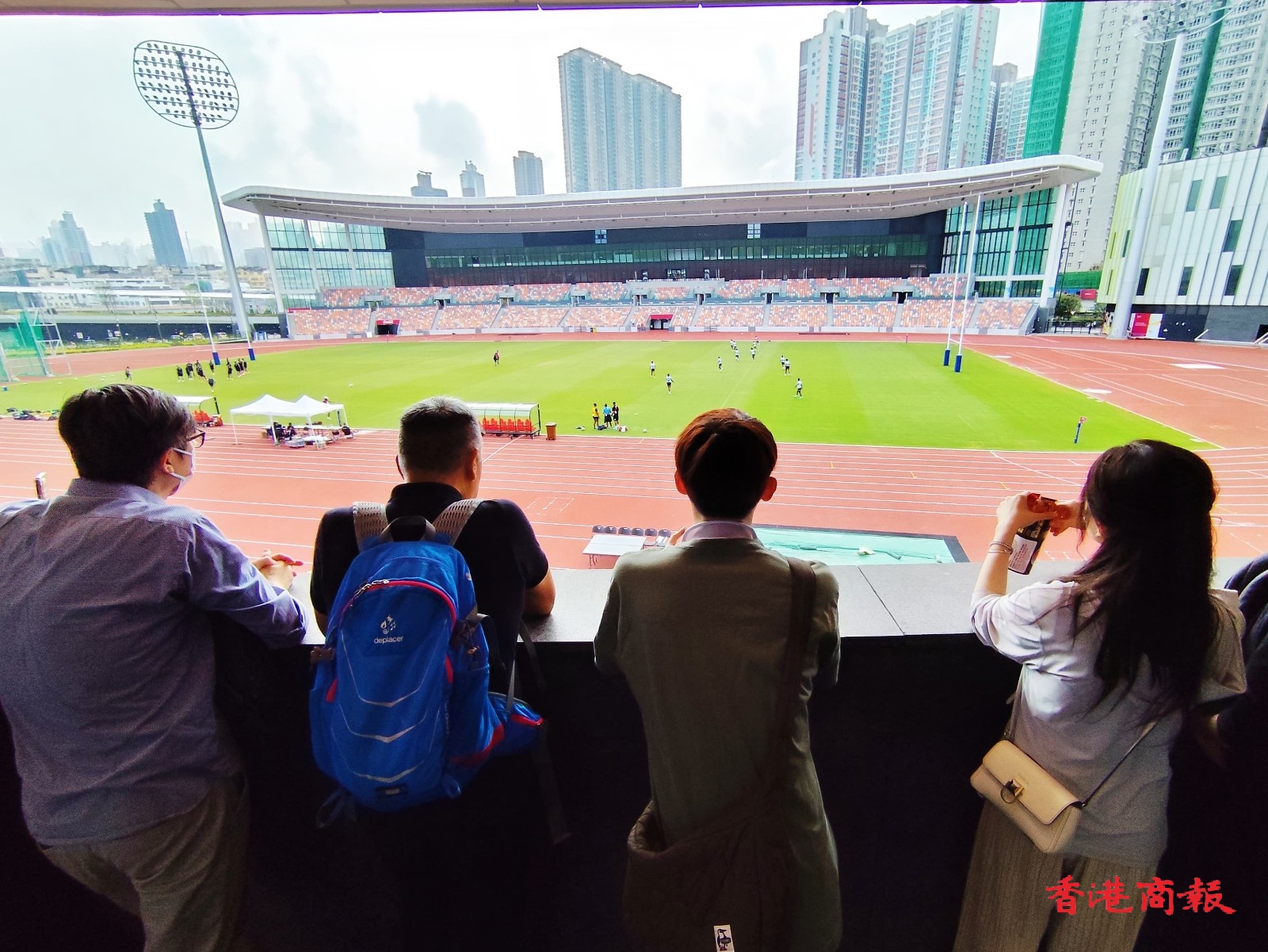 關奕曦提到自己第一年打欖球,一接觸就很有興趣,因可分為傳統欖球(Tackle Rugby) 及非撞式欖球(Touch Rugby)不同種類,也是第一次前來啟德體育園,是新主場,內部設施很多很好很新。