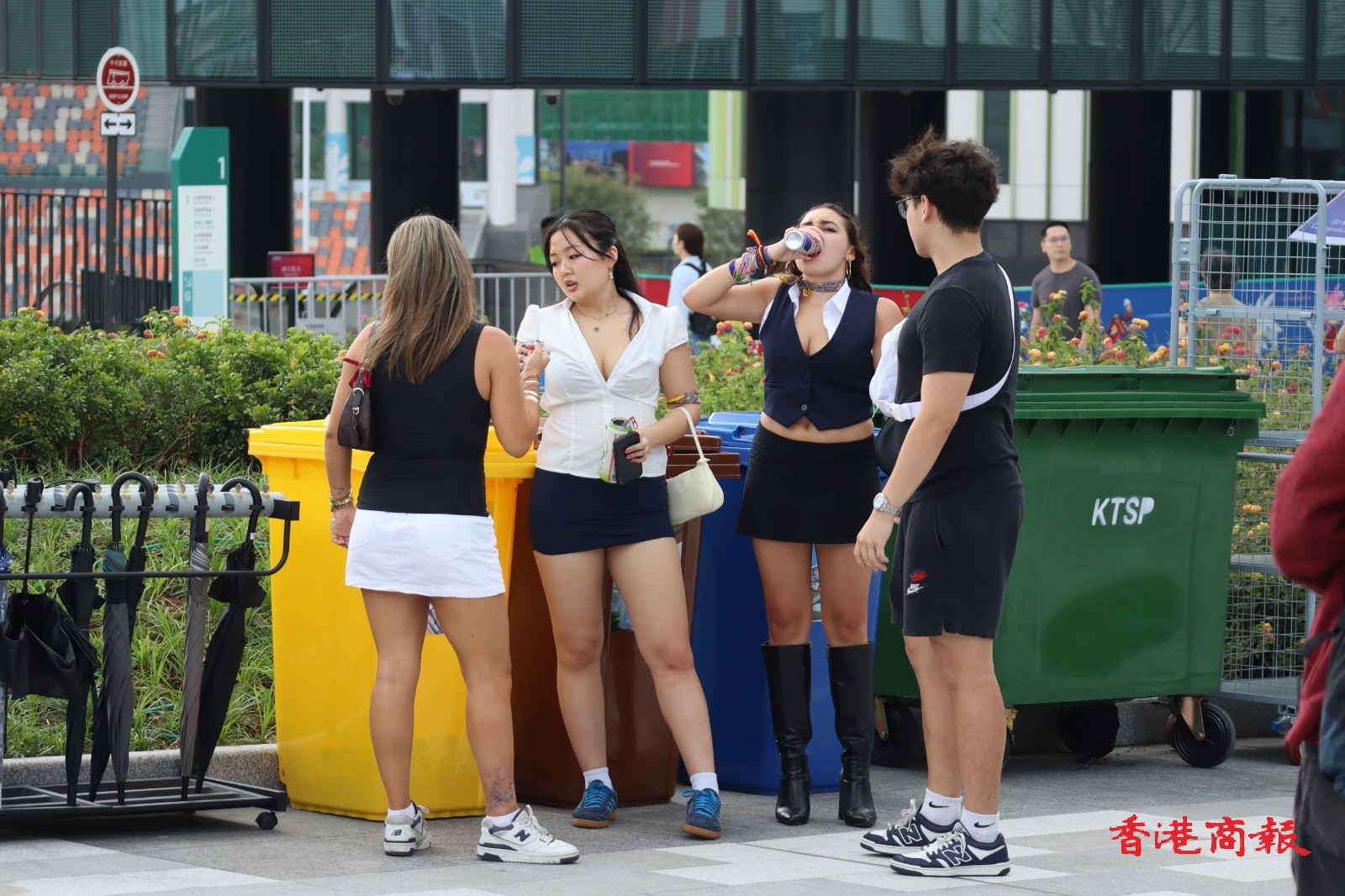 黃先生和吳小姐身穿法國隊球衣和佩帶日本漫畫頭飾前來觀賽。兩人稱佩帶頭飾是因為喜歡有關角色,而前者最喜歡的球星是Antoine Dupont,但今次未有參賽。他提到以往看過4次香港七人欖球賽,對於賽事第一次移師啟德舉行,覺得氣氛應會很好,因場地很大,心情很興奮、期待。吳小姐是第一次觀賞欖球賽,因有黃先生介紹與希望感受一下賽事氣氛。兩人預計觀賞至晚上8時後會外出進餐,假若球迷村內的餐飲攤位售價為每人100元左右都會考慮嘗試。