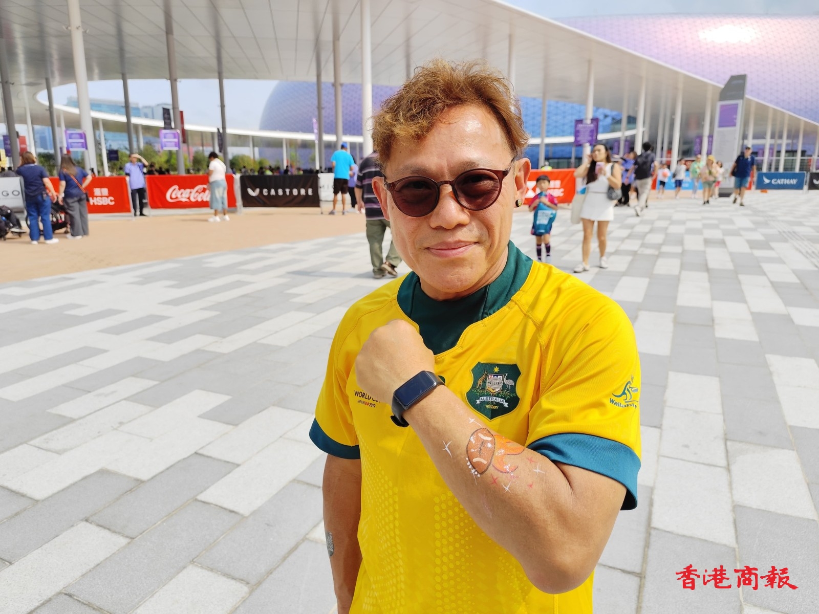 王先生表示,香港七欖第一次來到啟德舉行氣氛會好一點,因可容納多點人、設備很好,而以往大球場是露天,現時可因應情況選擇作為室內場,有冷氣。今早觀賞了加拿大對日本,各項球隊的排名在世界來說是數一數二,關鍵是臨場發揮,故賽事觀賞性很高。至於以前大球場球迷與球星距離只是一個欄杆,可一起拍照,在啟德應該做不到。他更透露有一個攤位遊戲很多元化,有點特色,是一個反應遊戲,欖球會亮燈,玩家需按熄。另有彩繪,有約32款圖案可供選擇,因自己有打欖球,認為是需要有火,故選擇有這兩項元素彩繪。