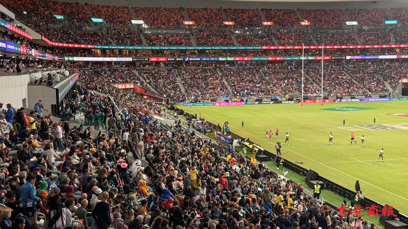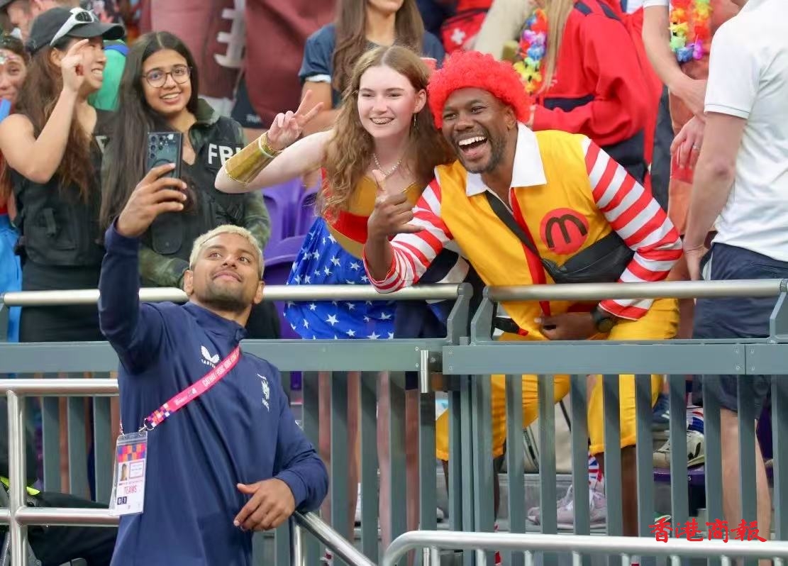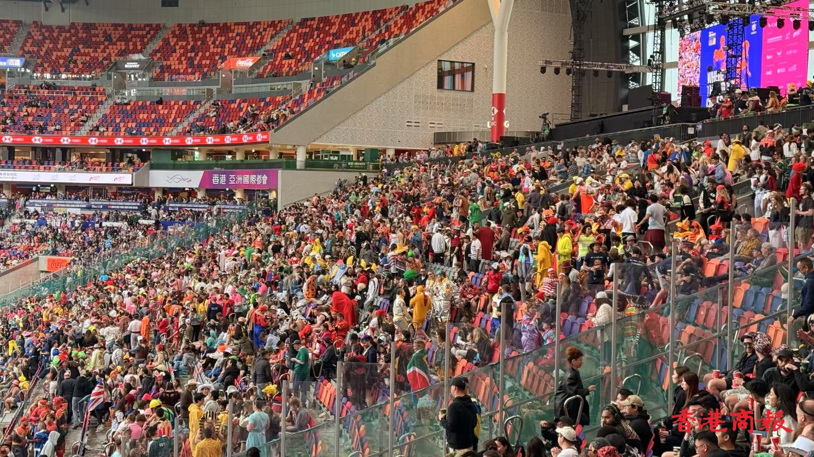 在啟德主場館舉行的「國泰/滙豐香港國際七人欖球賽」(香港七欖)今日(29日)進入次日賽事。儘管天氣明顯轉冷,依然無損球迷熱情,大家繼續狂歡。球迷見到攝記舉起相機,可謂有求必應,立即作出手勢示好拍照。而在最受球迷歡迎的南看台,賽會於下午實施人流管制,球迷須要長時間輪候,才能進入南看台睇波。(文、圖、片:志誠)