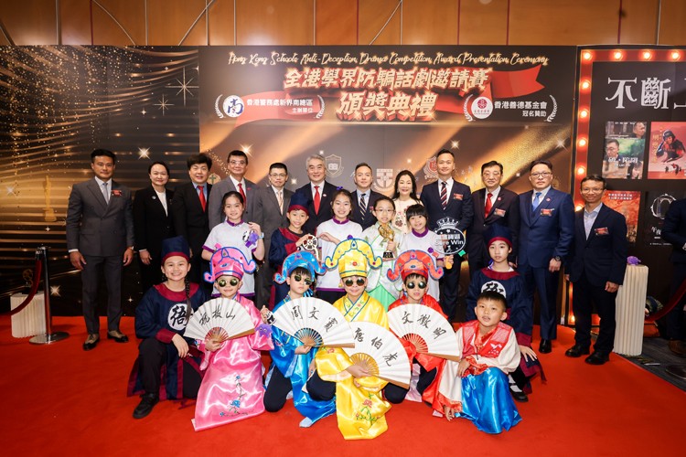除警務處處長處長和香港善德基金會主席外,主禮嘉賓亦包括警務處行動處處長陳東、香港善德基金會榮譽主席董吳玲玲女士和香港話劇團行政總裁梁子麒,一同主持亮燈儀式及向各得獎學校及學生頒發合共18個獎項。(記者區天海)