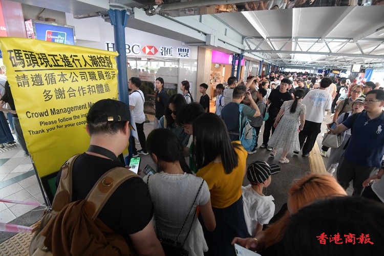 記者再轉到尖東海傍,輪候天星小輪的乘客平均要等半小時。當中絕大部分都是內地客,有些更是穿上日漫、華服或盛裝。穿着日漫衣服的懷小姐說:「我是深圳的,今次來主要目的是拍攝,希望以維港做背景,所以要坐船。」