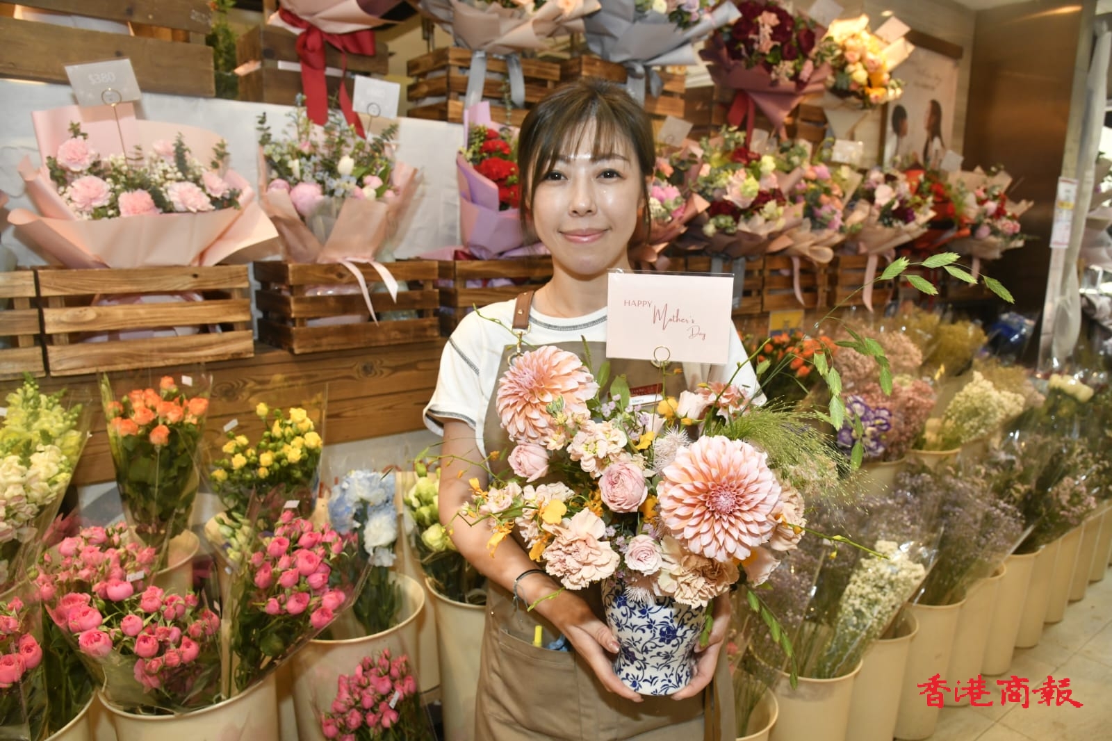 今日(11日)是母親節,消費市道暢旺,旺角倫敦大酒樓的早午茶市座無虛席,更須要排隊等候,不少市民都是三代同堂來「飲茶」;街頭上很多婦女都手執鮮花,前往太子花墟買花的人流絡繹不絕;「卉豐花業」負責人稱,今年鮮花來貨價和零售價均無變,實體店生意下降兩成,靠網購和加推增值產品才令業績與去年相若。前來買花的市民曾遍都消費300至500元,消費額與去年相若。