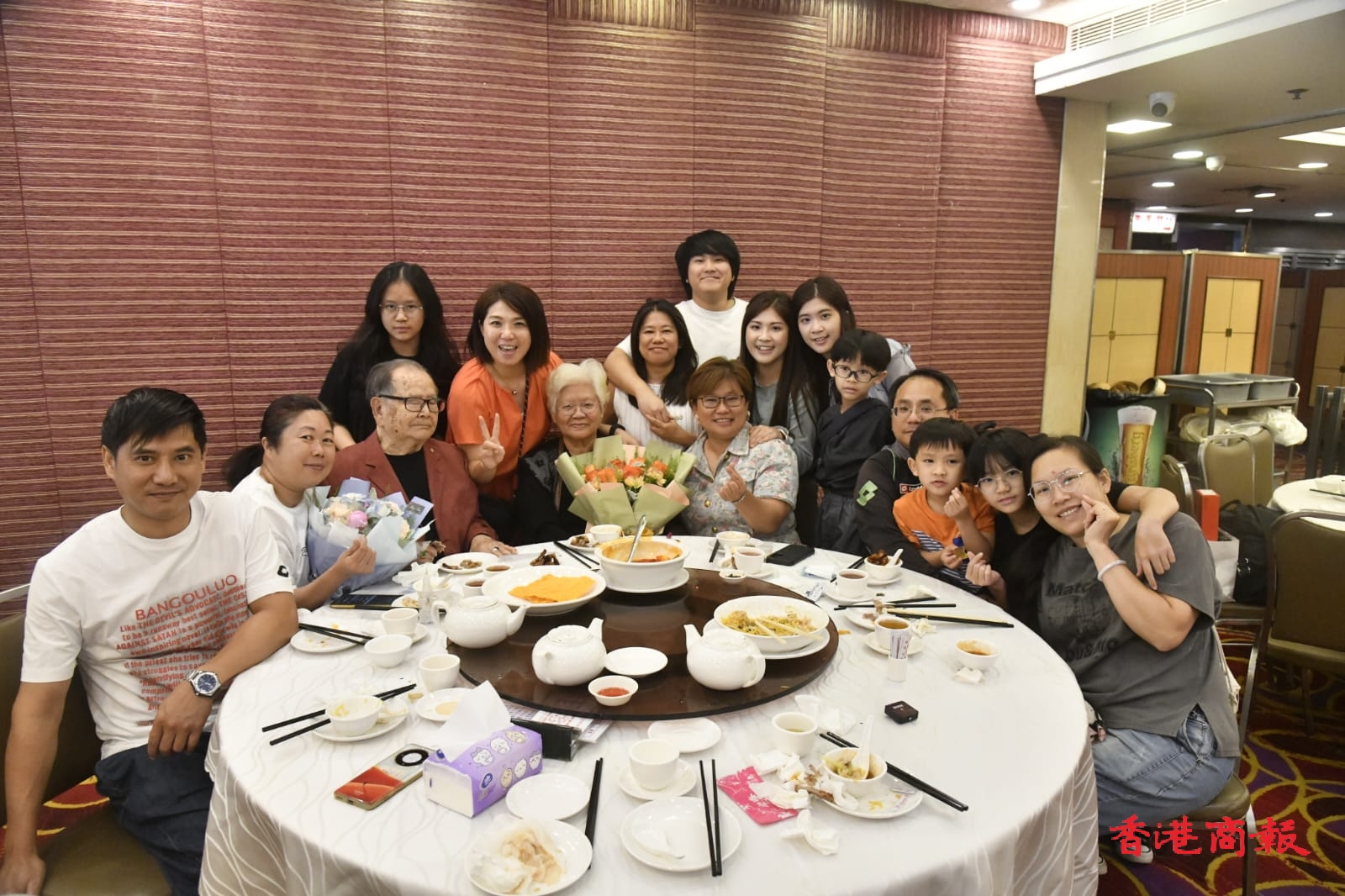 莫太(左一)與子女和孫女三代人前來飲茶。