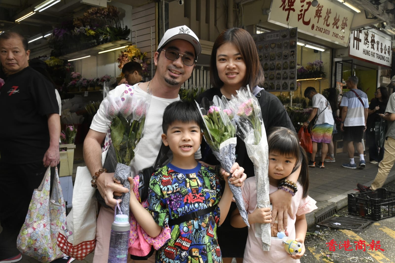 藍先生與太太和一對子女前來買了三束鮮花,消費300元。他說:「每年都是差不多這樣過,先來買花,之後在九龍的商場行下,晚飯會吃西餐,一整天的消費約1000元;北上的話,要趕頭趕命,帶住小朋友會很攰。」