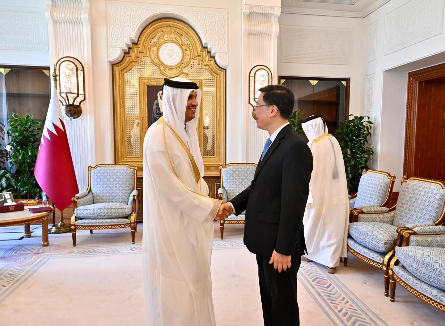 行政長官李家超今日率領香港商貿代表和內地企業代表抵達多哈,正式展開卡塔爾與科威特的訪問行程。他今晚(11日)在社交平台發文表示,很高興與卡塔爾埃米爾、國家元首HH Sheikh Tamim bin Hamad Al Thani和首相兼外交大臣HE Sheikh Mohammed bin Abdulrahman Al Thani會面,就加強香港與卡塔爾的經貿、投資及人文合作深入交流。