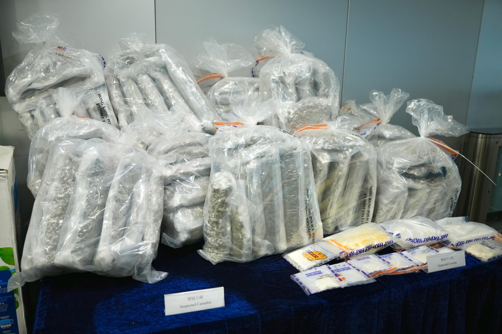 警方毒品調查科前日(16日)針對一個販毒集團,在錦田及沙田執行打擊毒品行動,拘捕5名男女,包括販毒集團主腦及骨幹成員,檢獲102公斤懷疑大麻花及3公斤懷疑可卡因,市值2350萬元。