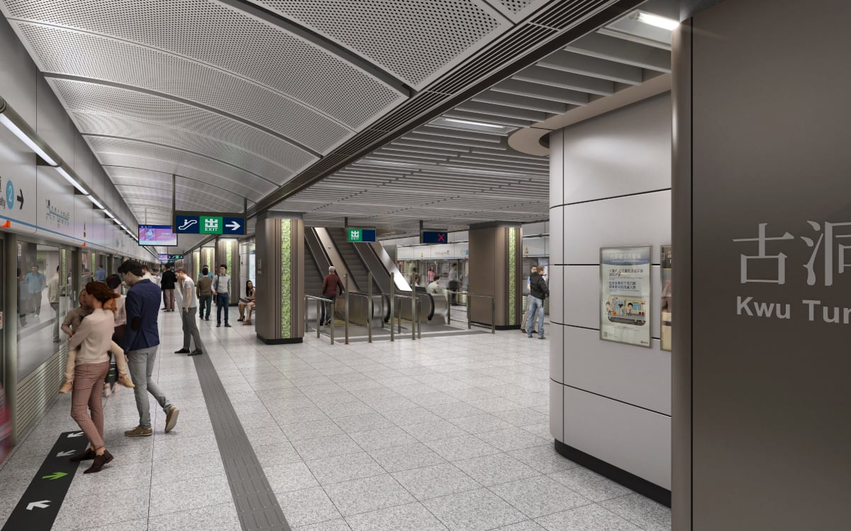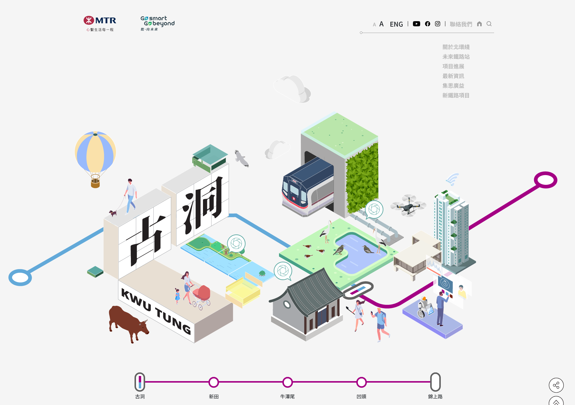 港鐵在官網介紹古洞站的位置及站內構想。(註:北環線各車站名稱僅為工作名稱。由於北環線項目的規劃和設計工作仍在進行中,圖像只作概念展示用途,展示內容亦僅供參考,可能會有所變化。)
