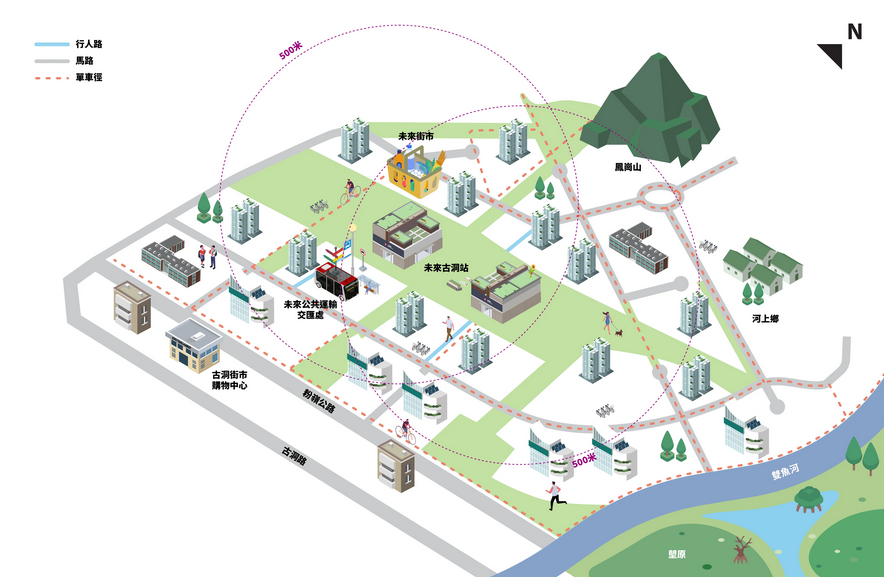 根據港鐵官網介紹,因應北環線沿線的發展步伐,會先在現有東鐵線落馬洲支線上開始興建古洞站,然後陸續開展主線包括北環線古洞站的工程。兩線的古洞站將相鄰相連,擬建的古洞站位於未來古洞北新發展區的市中心,毗連新發展區內的住宅、零售、休閒及社會服務與社區設施用地。除了方便現有社區及新發展區的居民出行,擬建的古洞站亦有助釋放周邊地區的發展潛力,為社區注入新活力。
