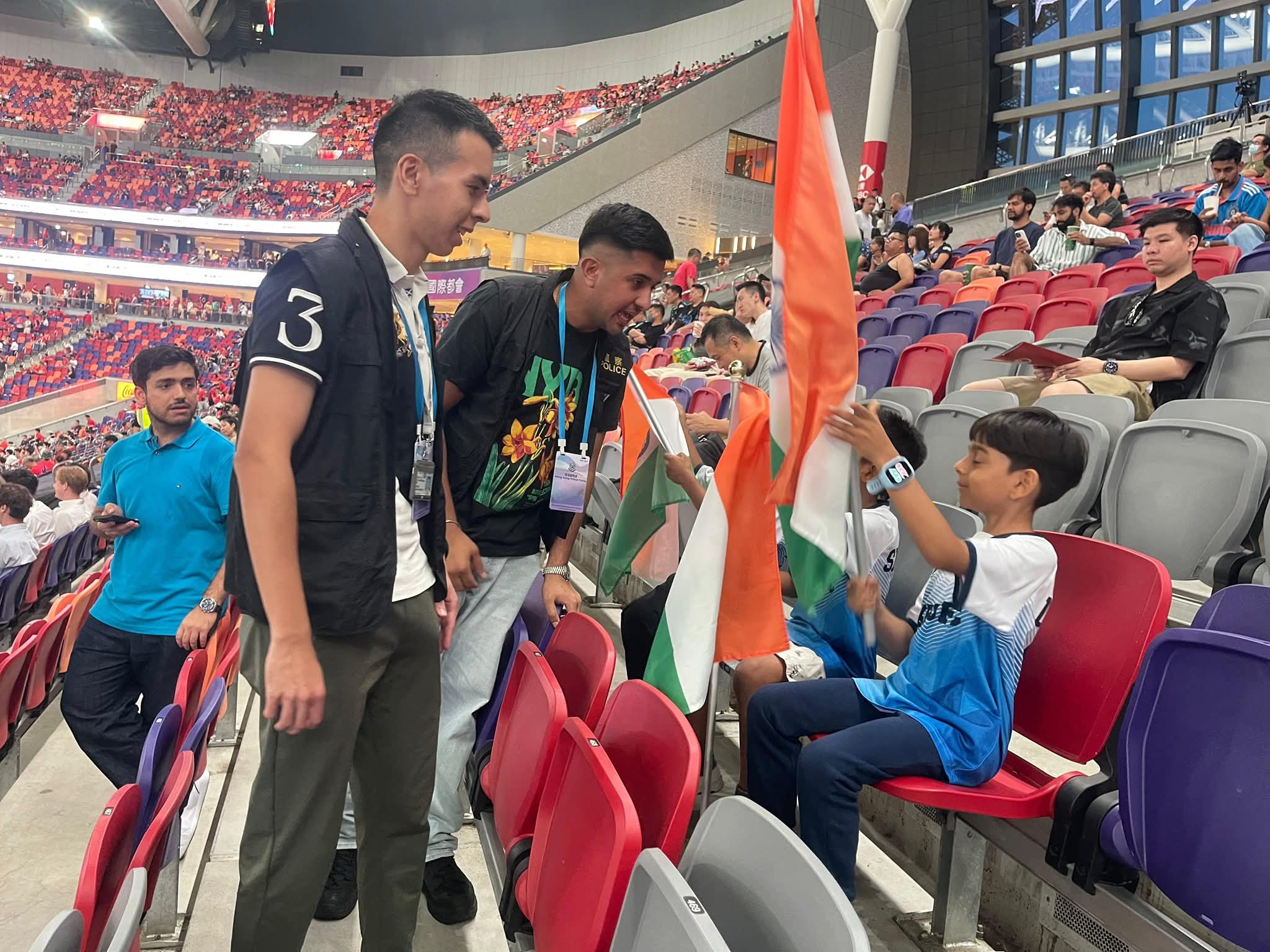 球場上激戰連場,場下歡呼雷動。香港與印度球迷齊聲為球隊助威,展現體育精神。