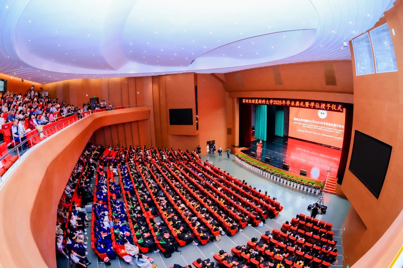 6月20日下午,深圳北理莫斯科大學2025年畢業典禮暨學位授予儀式在禮堂舉行。2025屆畢業生、在校師生、校友及家長通過「線下+線上」相結合的方式共赴這場青春盛典,部分在莫斯科大學訪學的畢業生通過分會場雲端相聚。