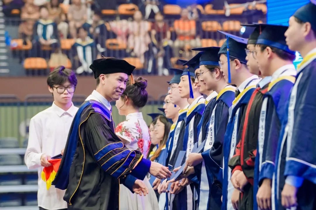 深技大黨委書記陳秋明教授為「十佳本科畢業生」、研究生優秀畢業生代表頒發證書。深圳技術大學2025屆畢業生超3000人。本科生在學科競賽中榮獲國家級獎項137項、省級獎項187項。672人被耶魯大學、清華大學等國內外知名高校錄取深造,就業學生進入騰訊、華為等頭部企業。
