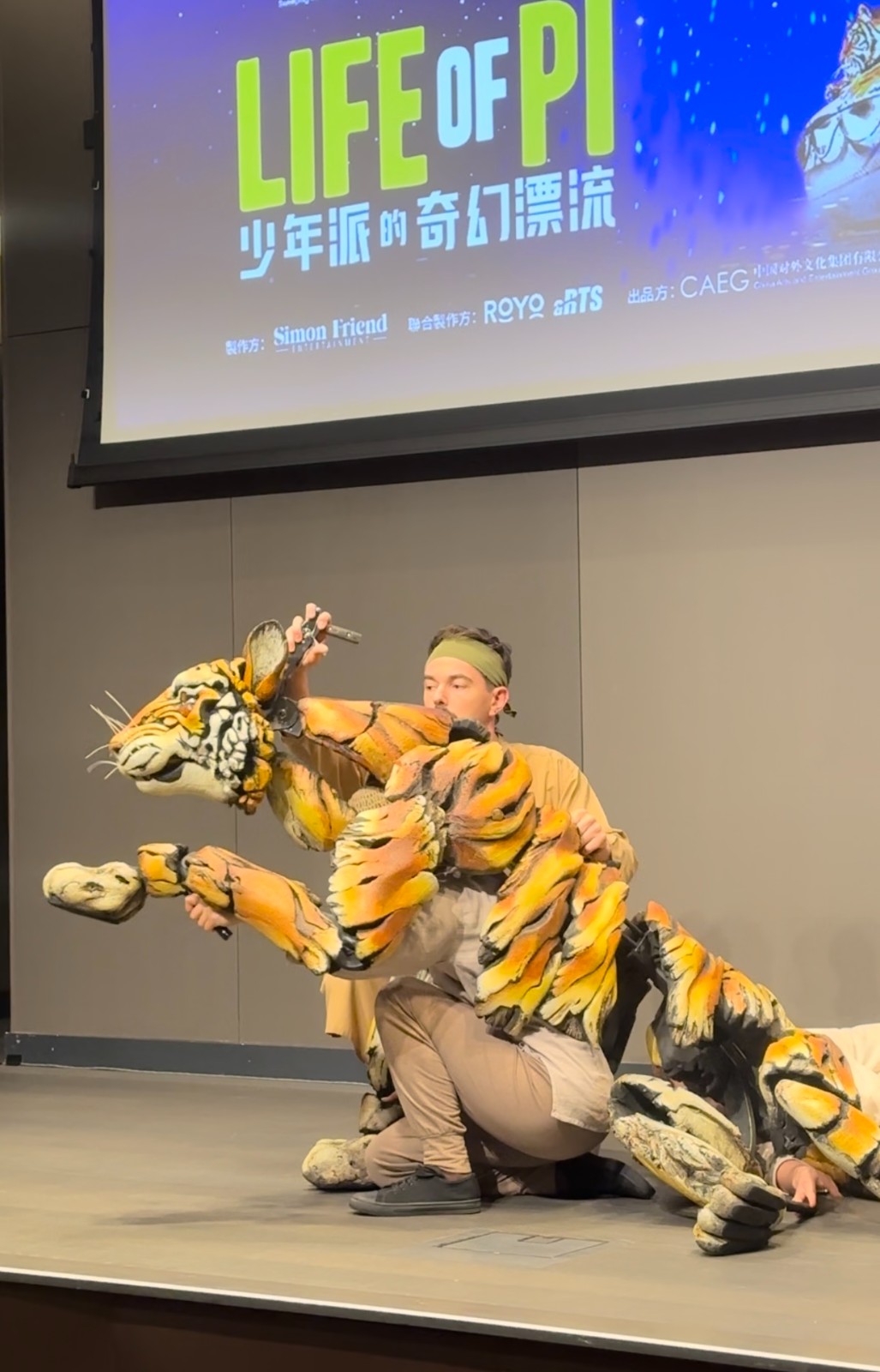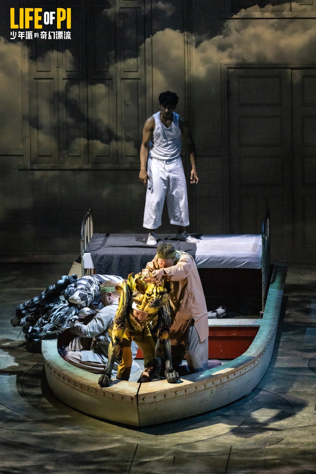 本次演出中最受矚目的是「偶」。例如三位操偶師精密操縱孟加拉虎「理查·派克」,包括頭部、前肢和尾部的協同配合,以及每一次呼吸與咆哮。逼真度令人驚歎 。此外,舞台利用流動布景、燈光投影等視效技術,重現海上風暴、魚群遊動等場景,為觀眾構建沉浸式「漂流體驗」 。