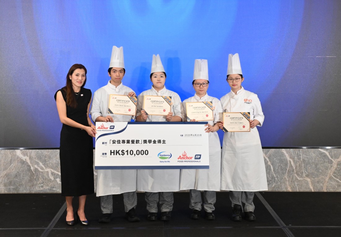 當日在頒獎典禮後,大會更舉行2024-2025年度安佳獎學金的頒贈儀式,由Maggie Lau向4位國際廚藝學院學生,派發証書及每人港幣10000獎學金,勉勵他們在學業上的卓越表現。