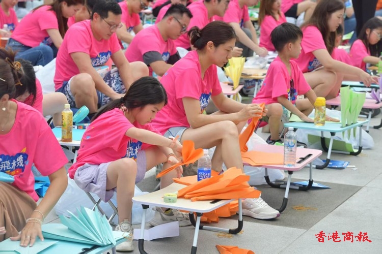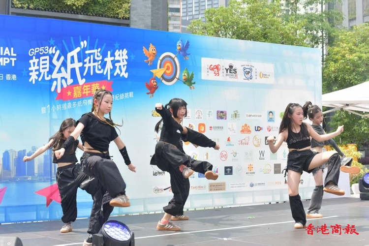 「GP53親『紙』飛機嘉年華暨一小時摺最多紙飛機世界紀錄」活動,今午(6日) 在啟德車站廣場舉行,大約有500人參加活動,工聯會立法會議員梁子穎、多位區議員、香港商報業務總監張蓓應邀出席,並擔任主禮嘉賓。有多名小孩和少男少女,先後在台上為大家送上勁歌熱舞,為活動揭開序幕。