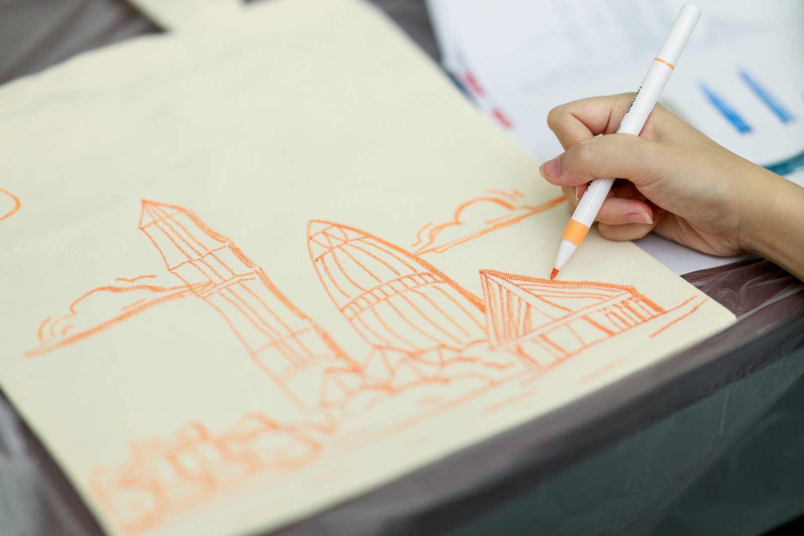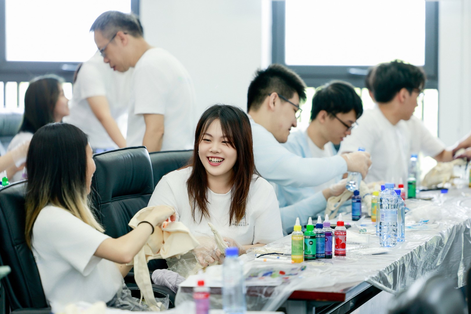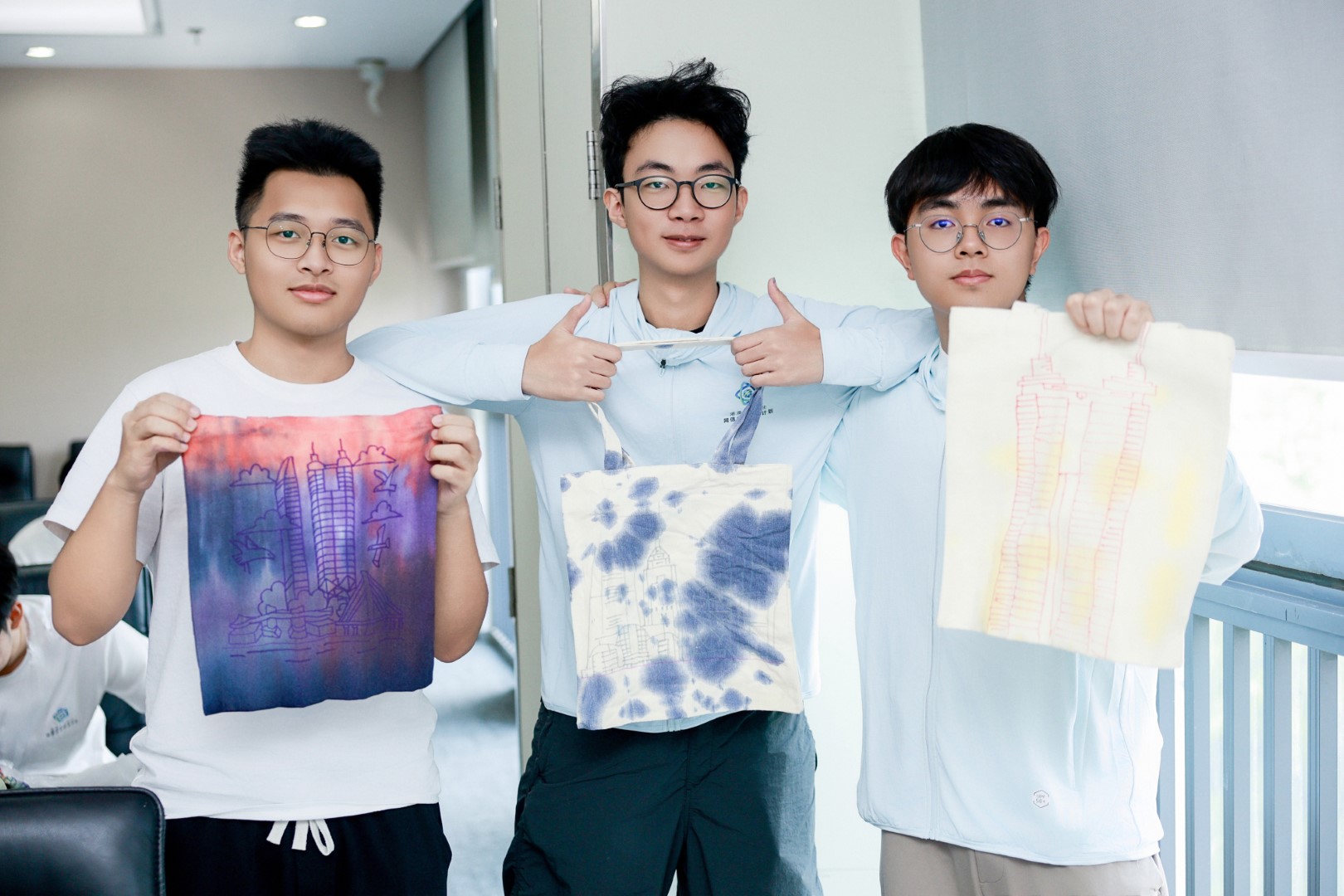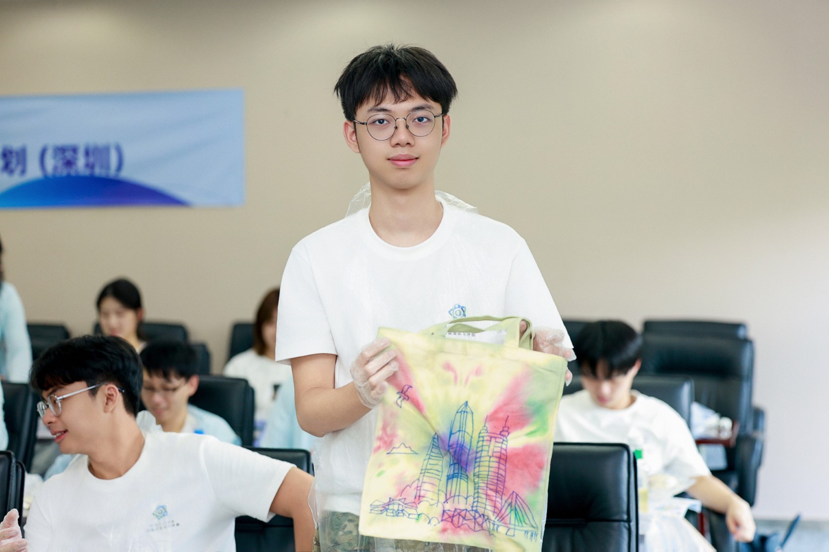 7月5日上午,參與「2025港澳台大學生網信企業實習計劃(深圳)」的學生們體驗深圳元素非遺紮染。同學們在老師的引導下,全神貫注地學習紮染技藝。他們手持畫筆在布面上精心描繪,同時讓皮筋在指尖靈活穿梭。最終,大家創作出了一件件融合了深圳元素、文化底蘊與創新思維的手工藝品,深刻領略到了非遺紮染的獨特魅力。
