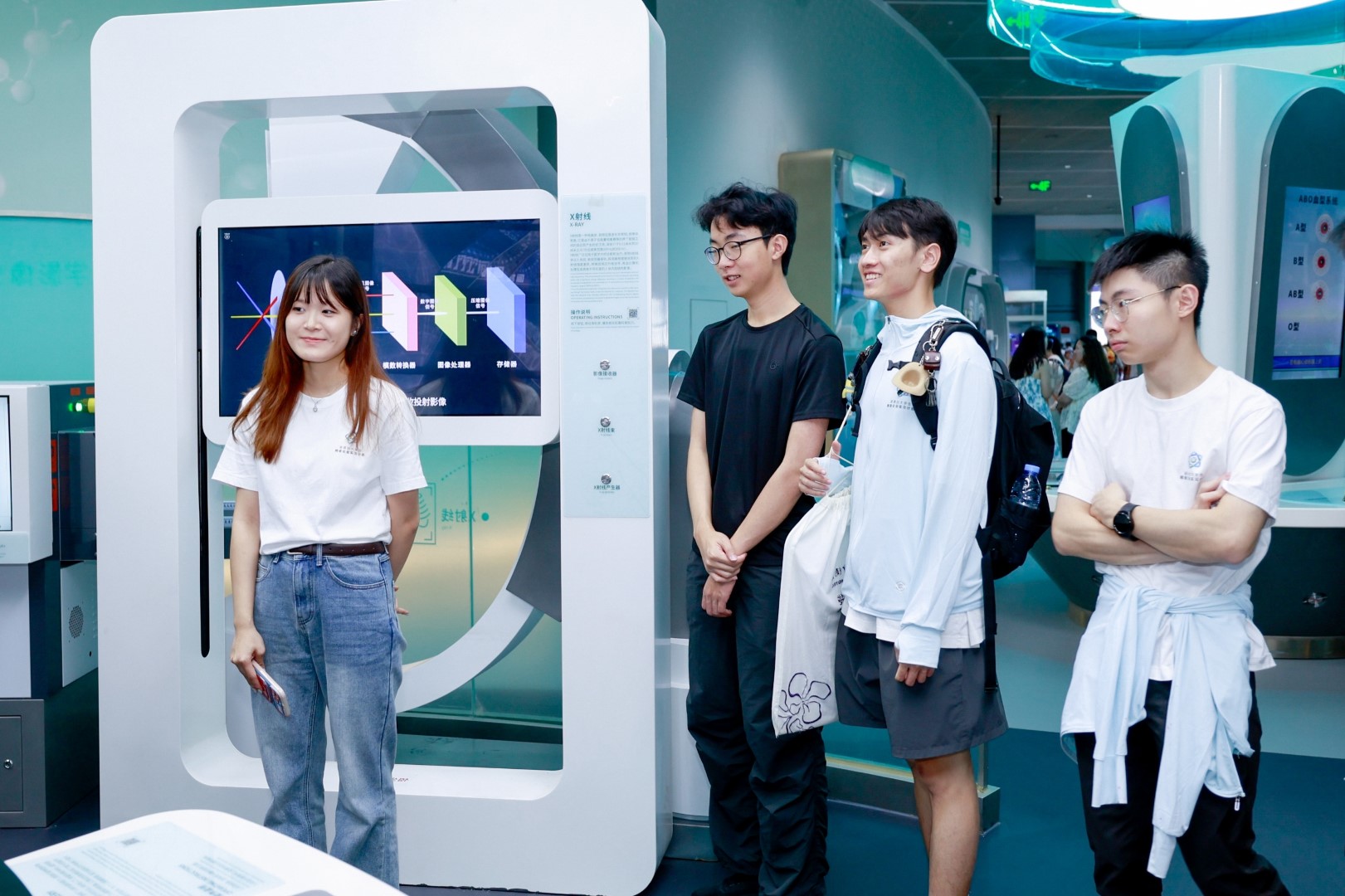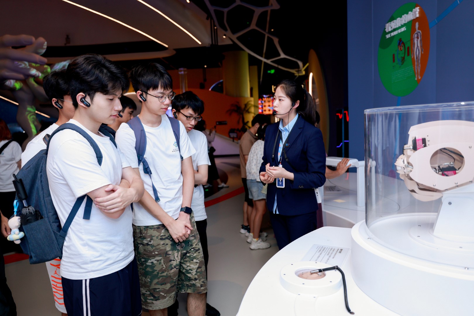 7月5日下午,參與「2025港澳台大學生網信企業實習計劃(深圳)」的學生們來到深圳科學技術館。在講解員的引導下,學生們穿梭於各個展廳,近距離接觸前沿科技展品。從虛擬現實的沉浸式體驗到人工智能的智能互動,從航天科技的模型展示到生物科技的微觀世界,每一處都讓他們駐足流連,進一步增強了大家對科技前沿的認知與熱愛。