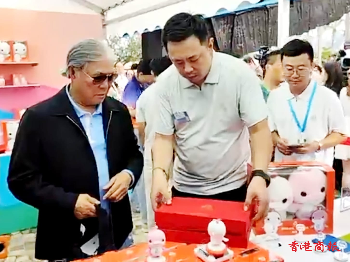 霍震霆更即場購買了2400多元張念品。他向本報記者透露是買給孫兒的,他自己則最喜歡的是白海豚喜祥物「喜洋洋」和「樂融融」。
