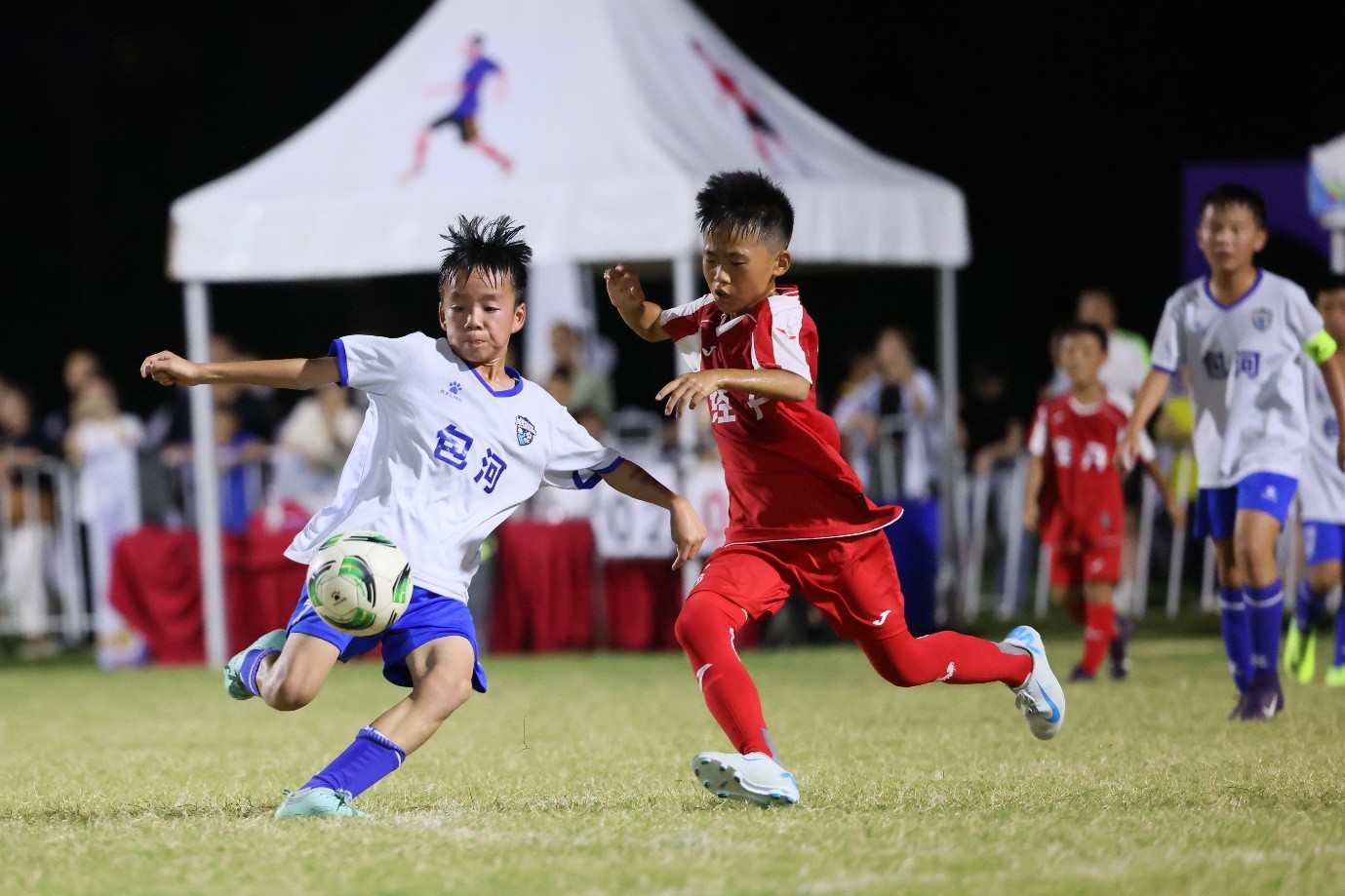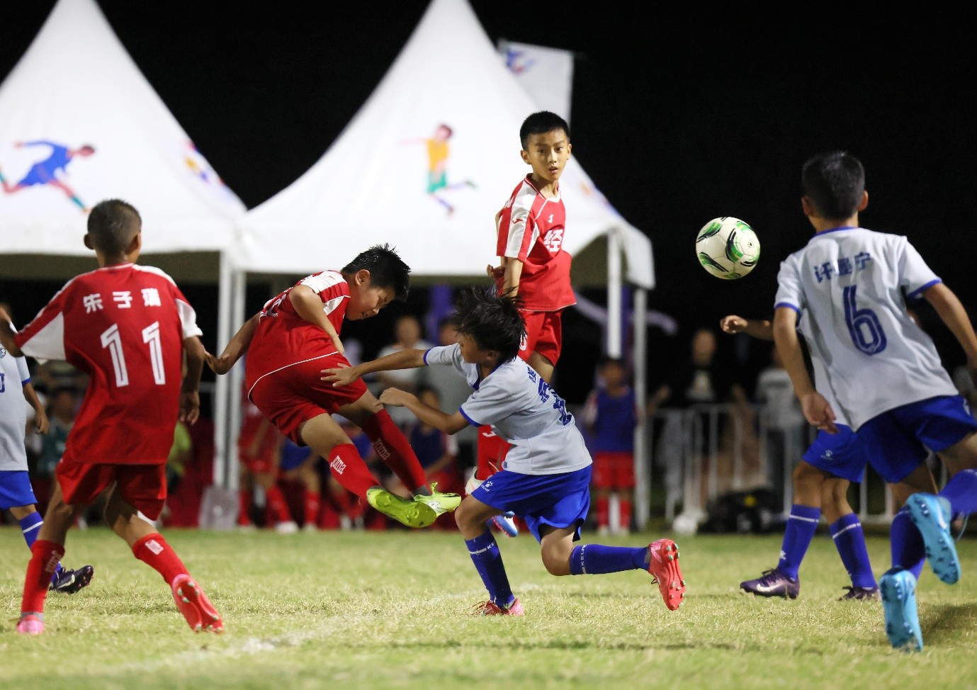 自7月7日開賽以來,男女兩個組別共24支隊伍(各12支)集結賽場。面對多變的天氣,小隊員們從未退縮:大雨傾盆時,他們在泥濘中搶斷傳球,泥水與汗水交織卻眼神堅定;烈日當空時,他們頂着高溫衝刺射門,濕透的球衣見證着不懈的堅持。這群10歲左右的少年,用每一次奔跑、每一次撲救,將對足球的熱愛融入賽場,在球迷的助威中詮釋着「永不放棄」的體育精神。