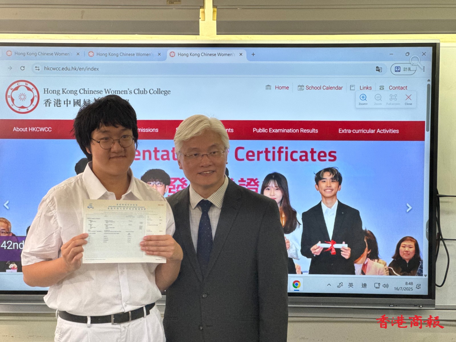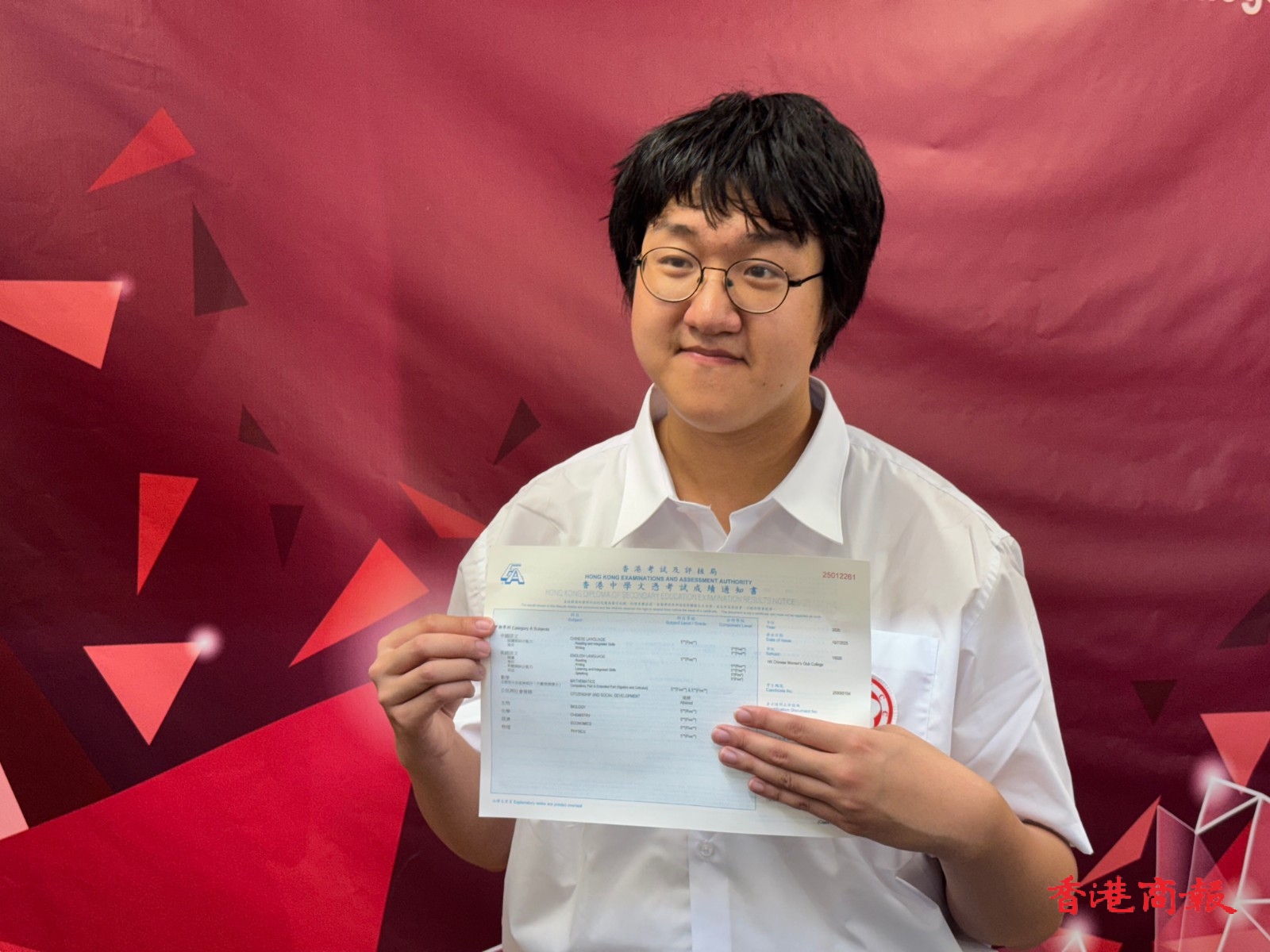 中國婦女會中學男生王海博考獲8科5星星,他在中英數3科、數學科延伸部分(俗稱M1及M2)、以及另外 4 科選修科都悉數獲得5**成績。