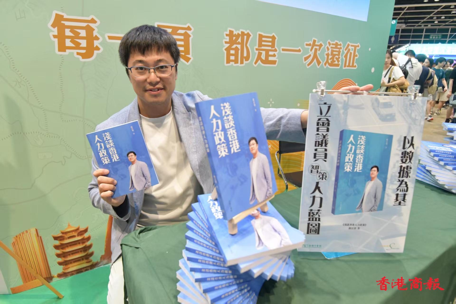 民建聯立法會議員顏汶羽在場為其著作《淺談香港人力政策》舉行簽名會,期間與讀者合照。他向本報記者表示,今次用了大半年時間撰寫着作,他本身在立法會和民建聯負責勞工事務,加上他由大學讀書,以至攻讀博士學位,一直研究人力政策,因此將過去十多年的研究成果,用一個較簡單和清晰的方法作講解,介紹一些在勞資市場的矛盾。