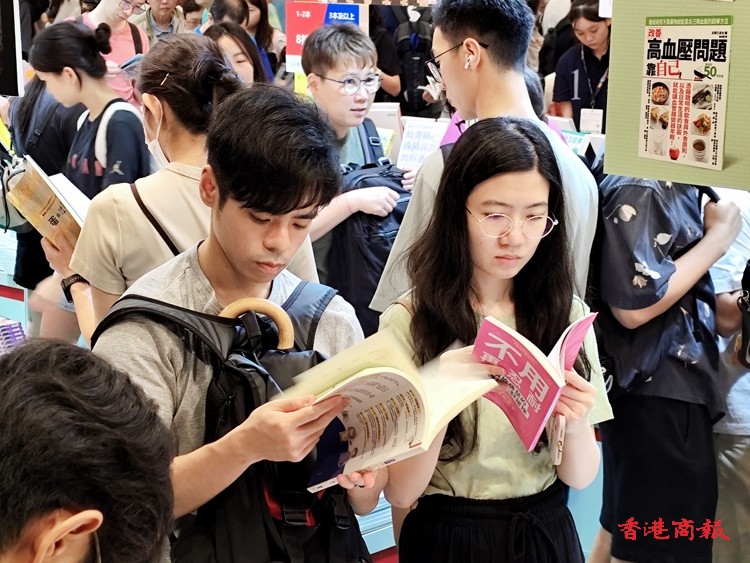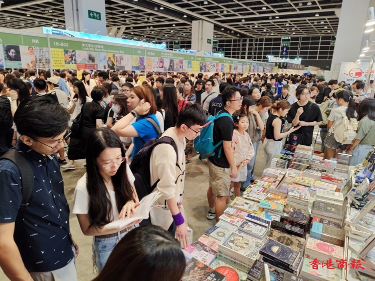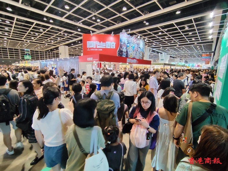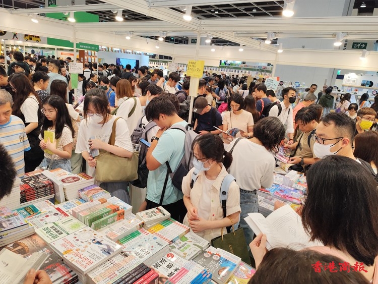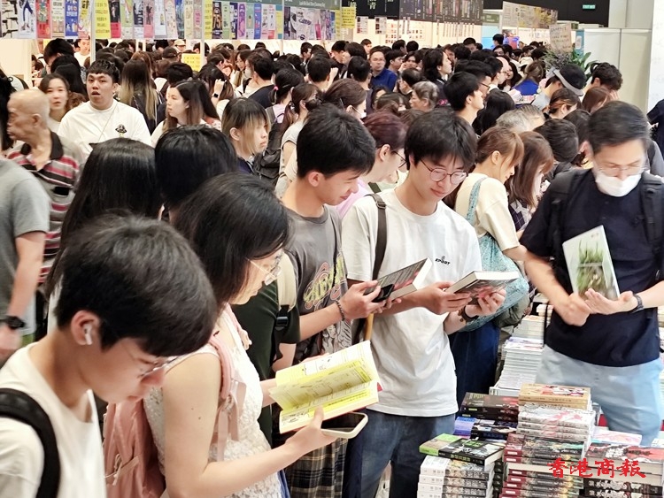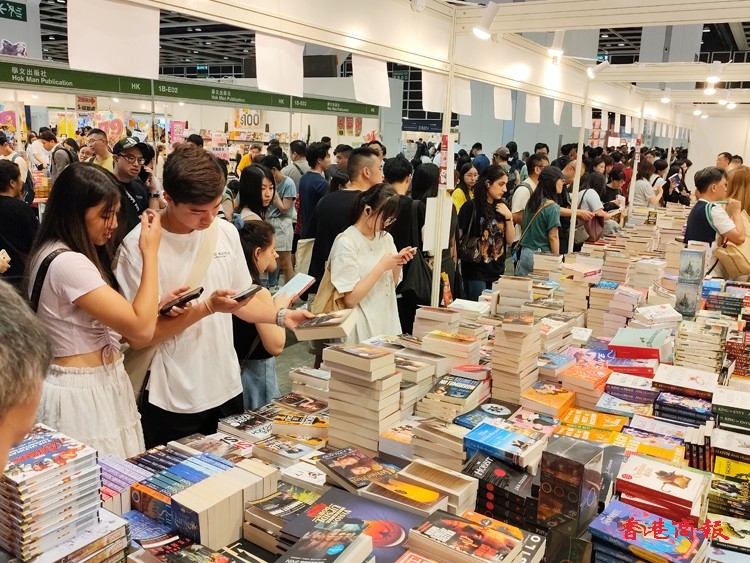 香港書展今日(19日)踏入第四天展期,適逢周末,吸引不少書迷帶備行李箱和環保購物袋入場掃貨,滿載而歸。有參展商預料,今年生意額可望錄得一成增長,另有參展商擔心颱風襲港影響銷情,坦言今年若有去年的生意額已算不錯。
