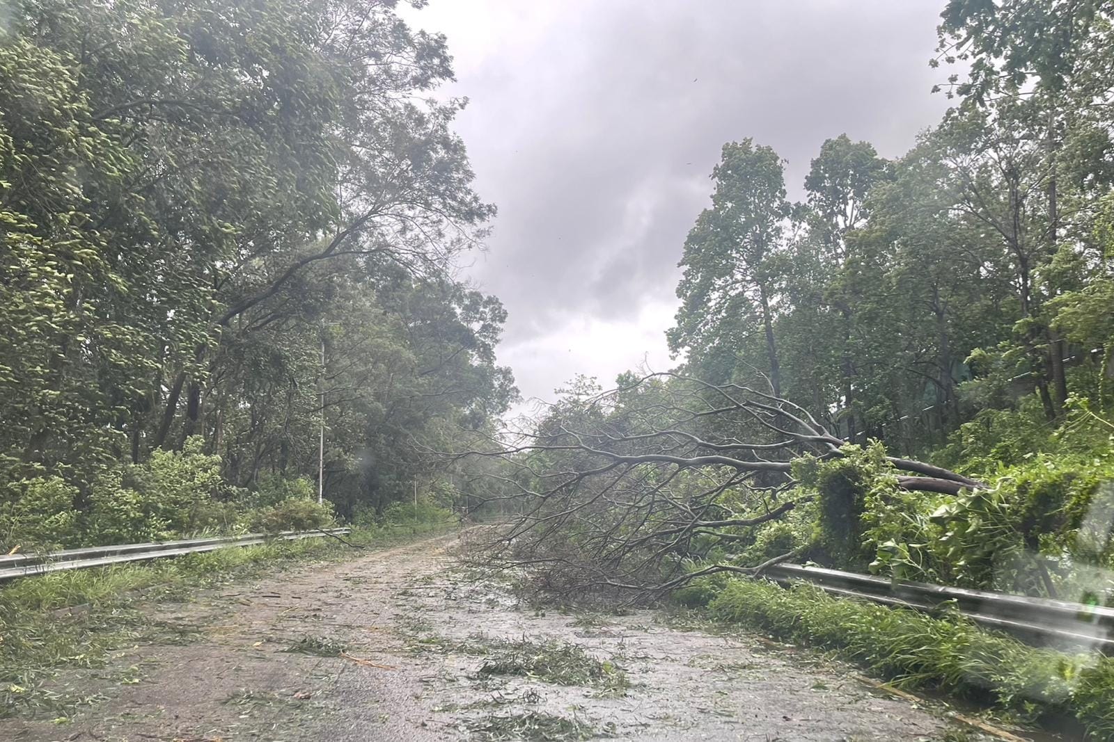 元朗公路支路樹幹塌下行車道上。