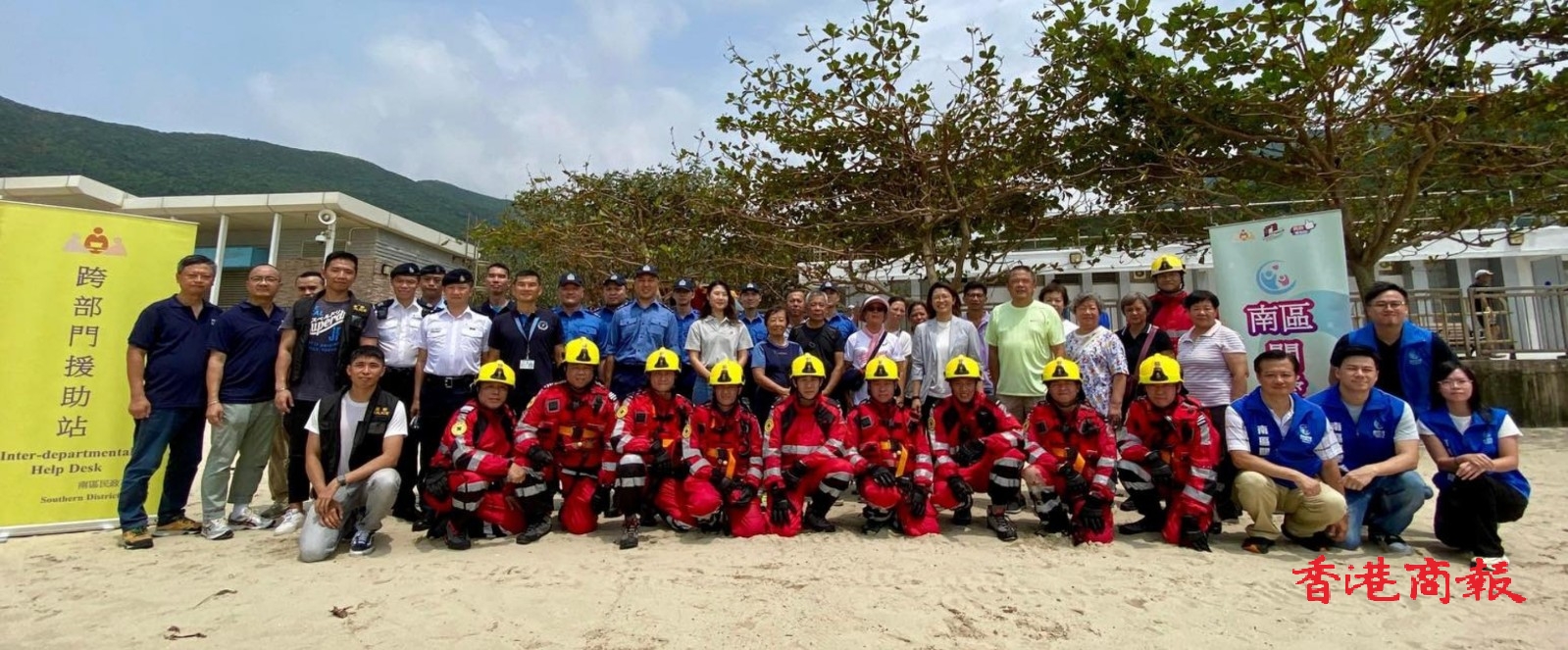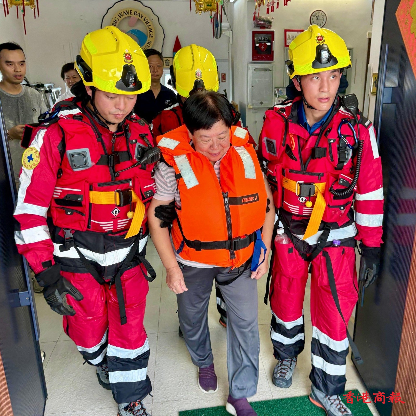 消防處昨日(30日)聯同南區民政事務處和警務處,在大浪灣村低窪地區與村民進行水浸救援演練,模擬因水浸導致大量村民被圍困,需要救援人員協助撤離至安全地點。