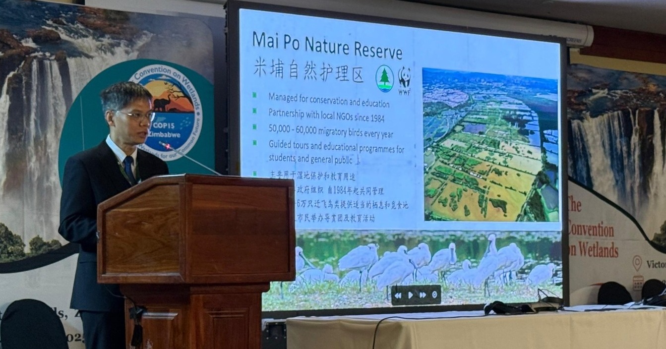 漁護署表示,助理署長(自然護理)陳堅峰在上周以中國代表團身份,出席在津巴布韋舉行的《濕地公約》第十五屆締約方大會,在會議上向各國代表和其他與會者介紹本港濕地保育工作,包括米埔內后海灣拉姆薩爾濕地的管理工作,以及建立濕地保育公園系統計劃。