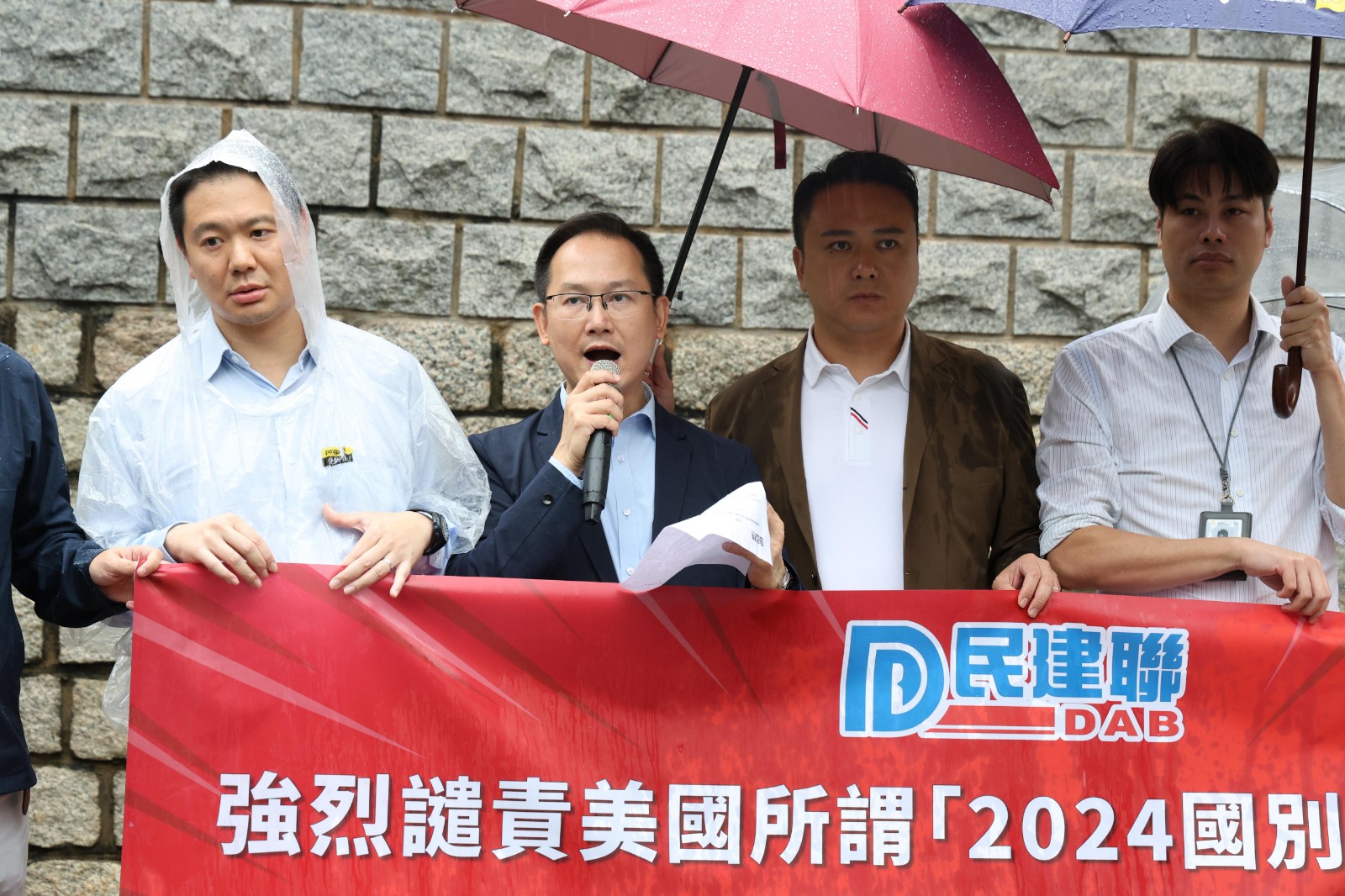民建聯副主席周浩鼎、陳學鋒、副秘書長葉文斌,及立法會議員何俊賢、顏汶羽、梁熙、李世榮及聯同多名區議員,今日下午冒雨到美國駐港澳總領事館請願,指自《香港國安法》和《維護國家安全條例》實施以來,本港市民、各組織及機構等依法享有的權利自由,均得到充分保障。而「一國兩制」框架下的法治化、市場化、國際化營商環境,讓香港繼續吸引全球資本,今年上半年香港新股市場共集資逾千億港元,融資規模居全球首位,不僅讓香港繼續成為亞洲金融核心,更是全球高質量企業及資本的首選地,反映國際社會對「一國兩制」及香港的安全的投資環境的充分認可及信任。因此,美國一再妄議香港情況,提出的所謂年度人權報告,妄圖干預香港依法施政、破壞香港法治和社會繁榮穩定,其污衊和攻擊香港的險惡用心,注定不會得逞。