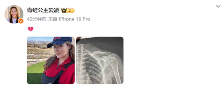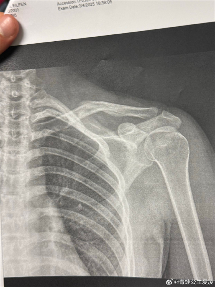 今年3月9日,谷愛凌在社交媒體曬出肩部骨折的X光照片,並配上一個心碎的表情,隨後相關話題登上熱搜。