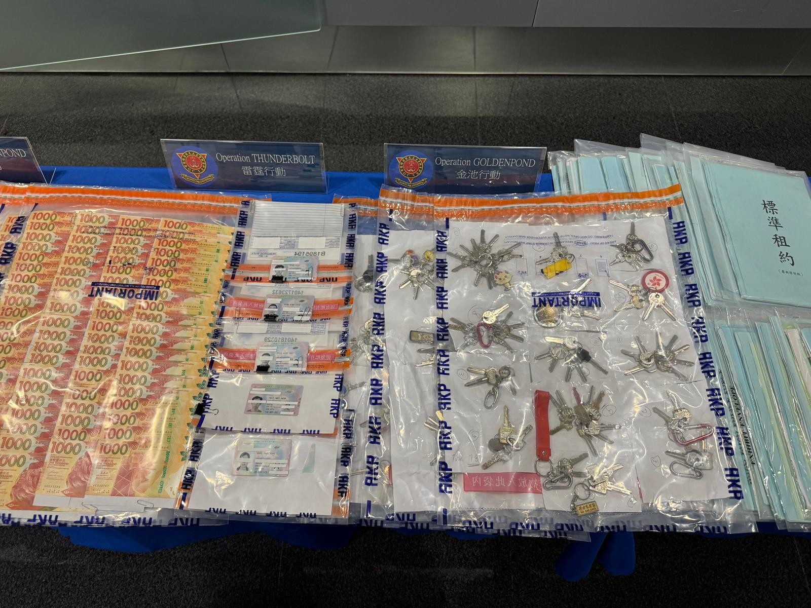 此外,警方拘捕2男2女(54至63歲),相信是人蛇集團在港骨幹成員,同為香港居民,涉嫌「協助未獲授權進境者留下」和「協助及教唆他人違返逗留條件」, 4人分別為涉案劏房業主、大房東及負責轉介黑工中介人。行動中搜出大量租約,並在其中一名劏房業主住所檢獲180萬元,稍後將向4人進行詳細財富調查,以追查犯罪得益去向。
