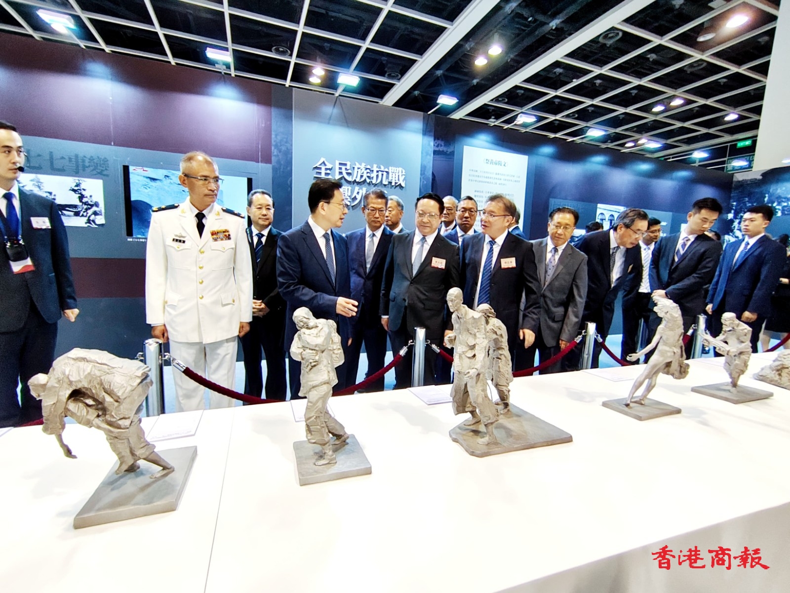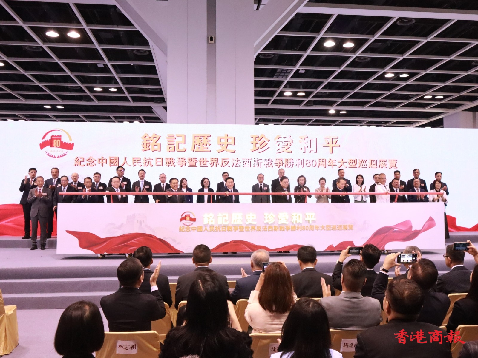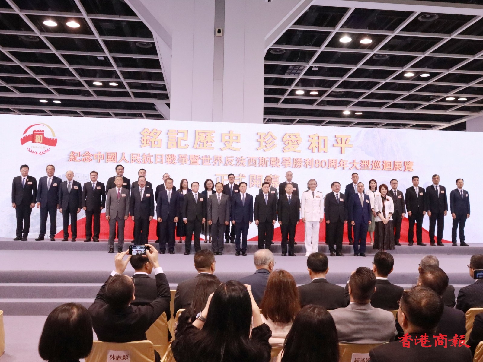 由大公文匯傳媒集團主辦的「銘記歷史 珍愛和平──紀念中國人民抗日戰爭暨世界反法西斯戰爭勝利80周年大型巡迴展覽」今日(22日)假灣仔會展舉行,行政長官李家超,中聯辦主任周霽,中央駐港維護國家安全公署署長董經緯,多位特區問責官員,立法會議員,港區人大代表、政協委員,數百人出席開幕禮。李家超致辭時表示,抗戰歷史提醒要居安思危,認識清楚侵略主義、霸權主義未有真正停止,我們必須時刻牢記歷史,警惕美化入侵言論,繼續維護國家主權、安全、發展利益。他又期望市民透過展覽,更全面及立體地了解這段不能磨滅的共同記憶,學習前人為民族及國家貢獻力量。