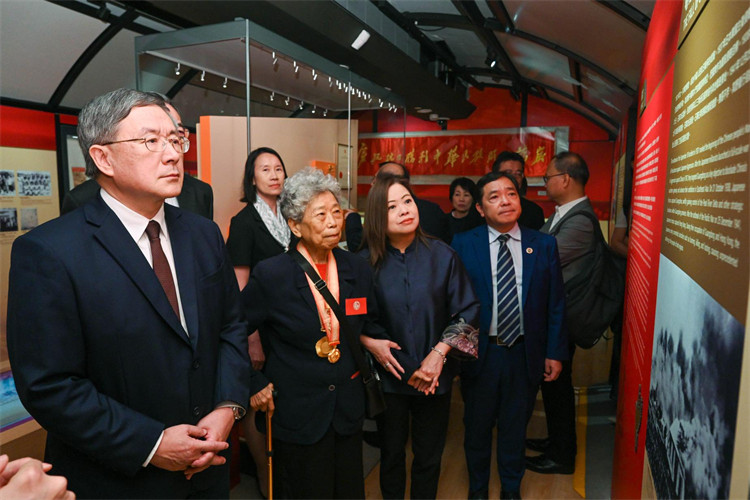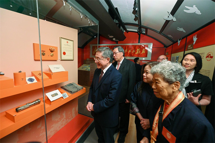 卓永興在儀式後參觀展覽,觀看多幀相片和多件歷史文物,後者包括中國人民抗日戰爭勝利的紀念章,東江縱隊港九獨立大隊成立70周年紀念章,還有東江縱隊隊員使用過的望遠鏡。當年為節省彈藥,戰士利用望遠鏡觀察敵軍才進行射擊,以求彈不虛發。