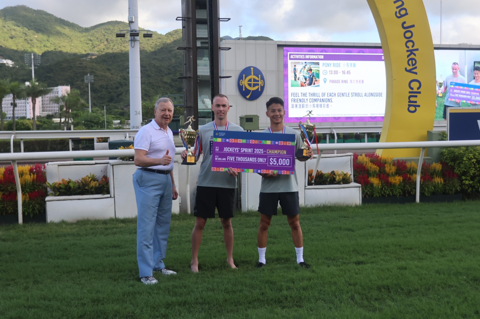馬會行政總裁應家柏擔任評判,在馬會賽馬事務執行總監夏定安發施號令下,一眾參賽騎師奮勇向前,梁家俊/奧爾民組合先聲奪人,率先觸線,獲得應家柏在賽後頒發冠軍獎盃、獎牌及5000港元獎金的支票。黃智弘/艾道拿組合力拼第二,獲頒亞軍獎牌及3000港元獎金的支票;而周俊樂/布文組合則奪得季軍,獲頒季軍獎牌及2000港元獎金的支票。