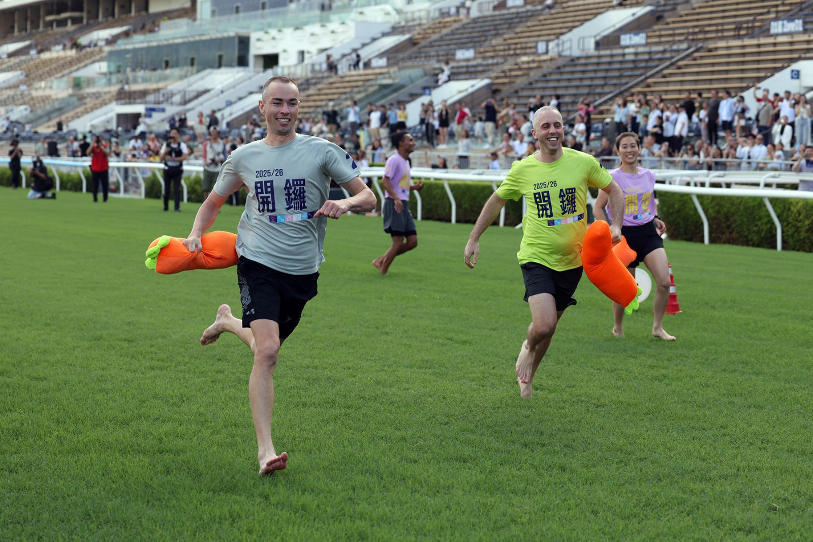 是日焦點正是於草地跑道舉行的騎師競跑,今年這項錦標一如以往,以接力形式競逐,每隊由兩位騎師組成,在100米的途程上進行接力賽,今年共有18位騎師分9組參賽,上屆冠軍組合田泰安/黃智弘折組上場,前者夥拍黃寶妮,後者就與艾道拿聯合出戰。