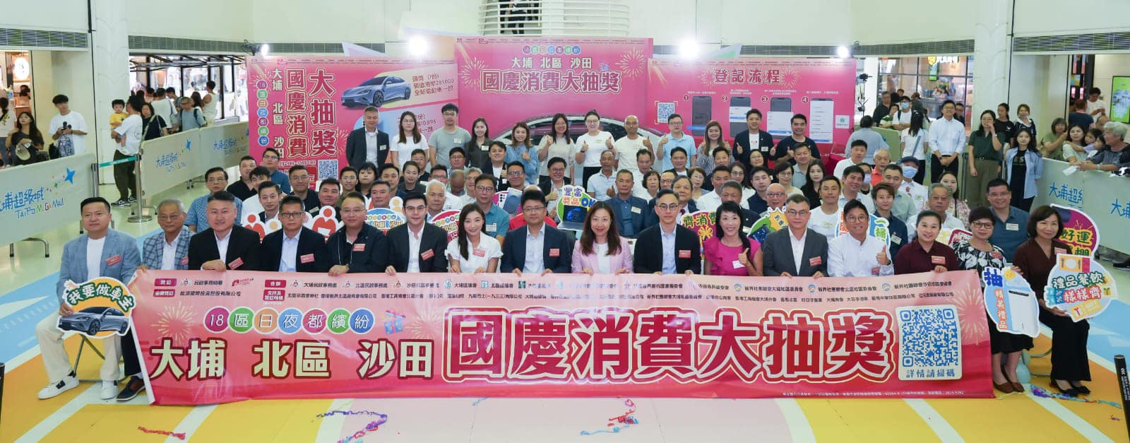 活動啟動禮昨日(30日)圓滿舉行,民政總署署長杜潔麗、中聯辦新界工作部副部長王卉、大埔民政專員陳巧敏、北區民政專員卓穎然、沙田民政專員余懷誠與一眾嘉賓為活動主禮。在啟動禮上大會向活動贊助機構致送感謝狀,感謝各機構鼎力支持國慶大抽獎活動。