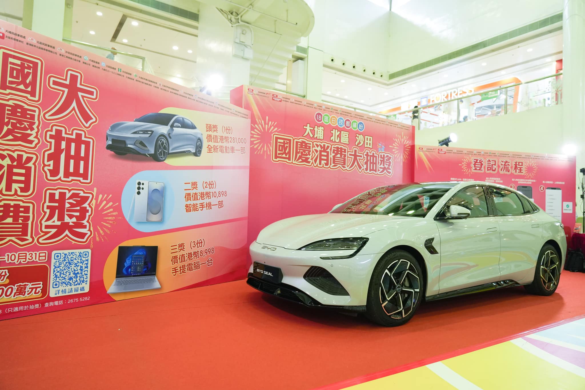 抽獎活動於8月29日至10月31日舉行,市民期間在大埔、北區和沙田區商戶消費滿港幣500元或以上(最多可合計2張收據),將商戶有效電子機印收據,上載至活動電子登記平台,即可以參加抽獎。頭獎為電動車一部,其他包括酒店套票、電子產品、家庭電器、餐飲禮券和商場商戶購物禮券等超過900份獎品,總值超過港幣100萬元。(記者區天海)