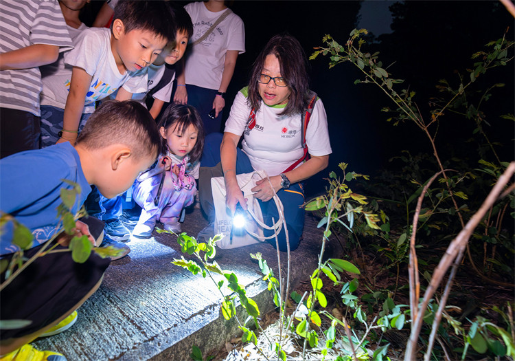 為響應「全國生態日」2025,「綠遊香港」計劃再度推出只在夏季限定的夜間生態導賞團,帶領公眾前往大潭郊野公園及南丫島進行「黑夜尋寶」,探索夜行動物的蹤跡。為協助新來港家庭更深入認識香港的生物多樣性,並促進社區共融,港燈透過新家園協會特別安排接近 20 位新來港人士走進大潭郊野公園,欣賞一場由多種蛙類「領銜主演」的自然生態交響樂。