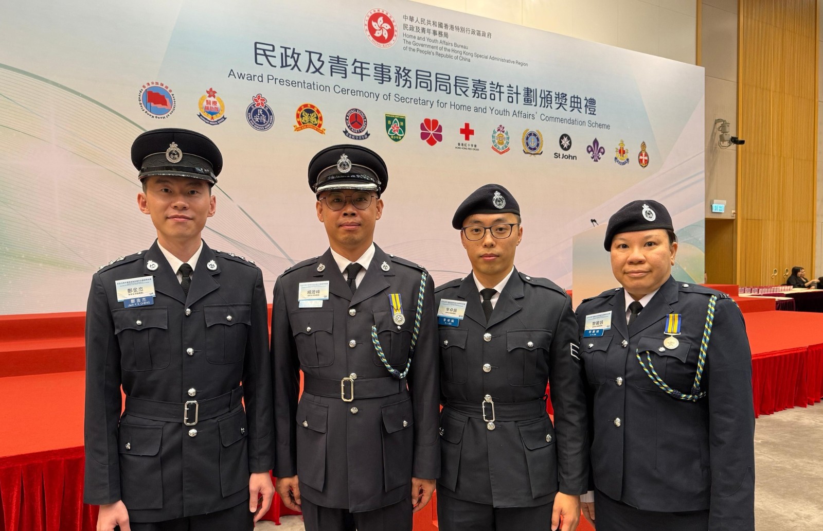 民政及青年事務局局長嘉許計劃2024頒獎典禮日前舉行,本年度民安隊共4位隊員獲得嘉許,包括楊澄峰、鄭金杰、黎麗娟及李卓倫。