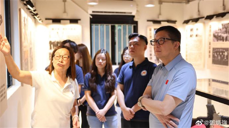 鄧炳強回憶,在這一幢當年先輩以生命守護的房子裏面,有不少戰時珍貴文物;他邊行邊跟年輕人講國家當年的苦難和奮鬥,以及羅氏家族不畏犧牲、挺身衛國的精神,希望他們透過這段血淚史,深刻體會國家從苦難走向強大的歷程,傳承愛國初心,自強不息,守護家國。(圖源 鄧炳強社交媒體)