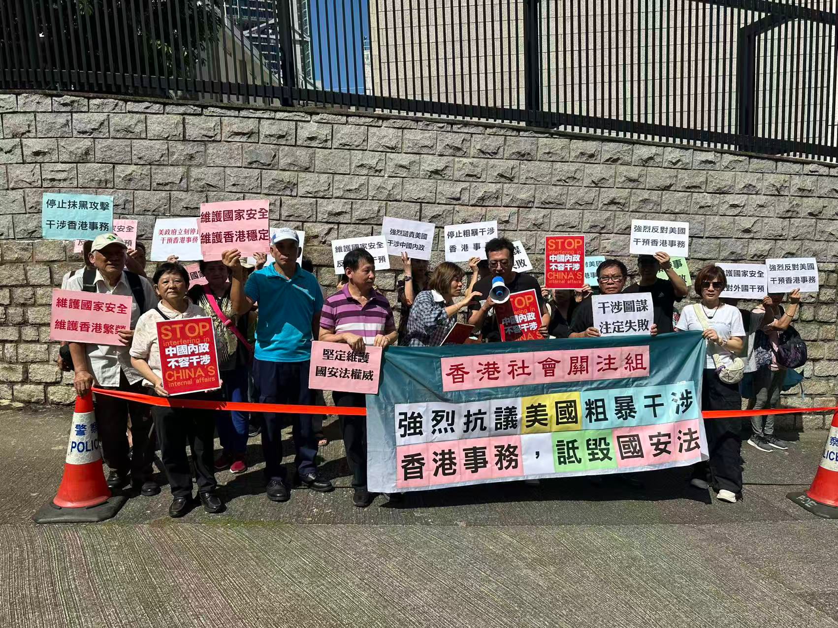 請願市民表示,美國近期發布所謂「香港政策法報告」,不僅惡意抹黑香港國安法,還對中央政府和特區政府有關官員實施無理「制裁」;美國政客更惡意詆毀香港警方依法通緝反中亂港分子的正常執法行動,對香港的人權法治狀況進行無端指責,妄圖干預香港國安案件的審理。