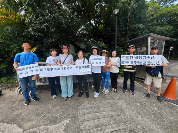 香港廣東社團總會以及多批香港市民,今日(9月6日)自發到美國駐港澳總領事館外抗議,呼籲美國立即停止干預香港事務和中國內政。