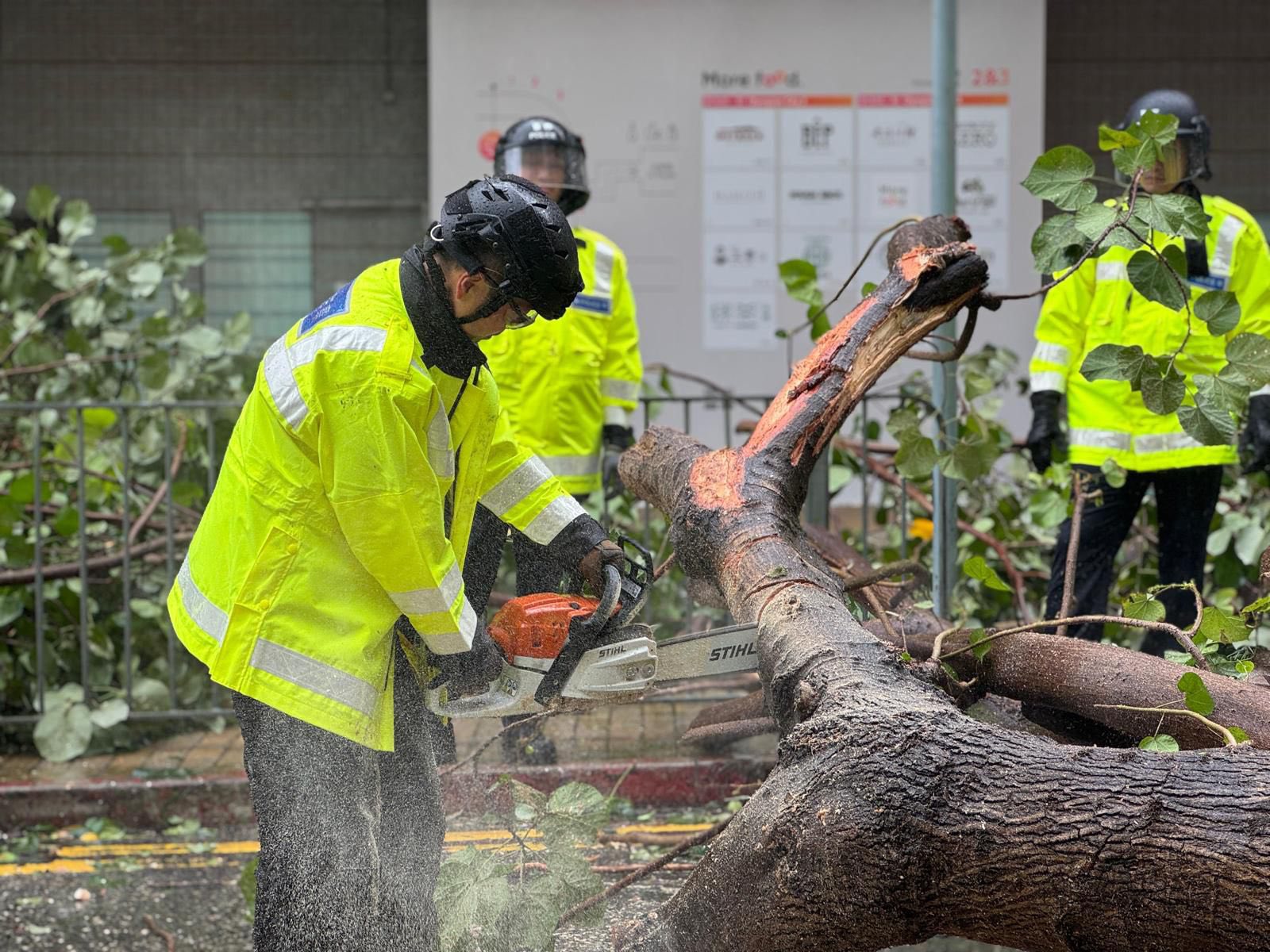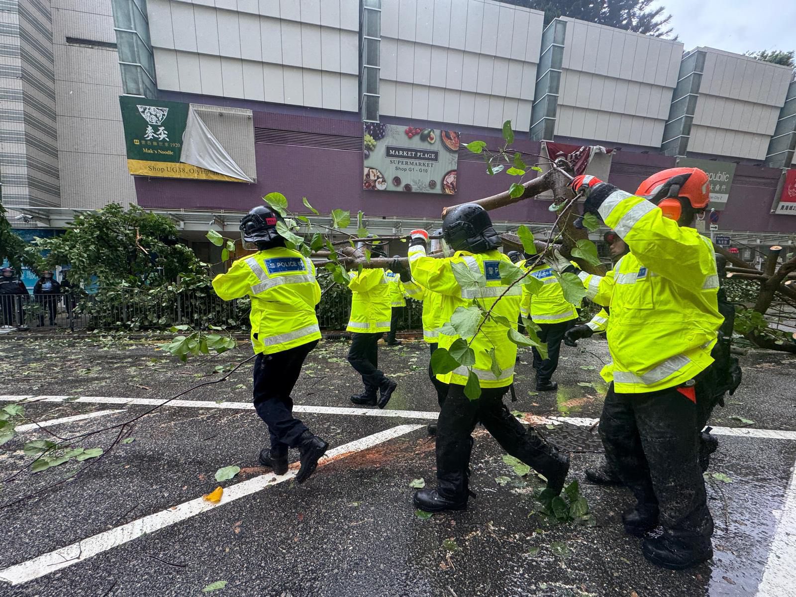 香港天文台於今日(8日)下午1時10分前仍然懸掛8號烈風或暴風信號,本港多區持續受強風驟雨影響。面對惡劣天氣,警務人員堅守崗位,站在風雨最前線,全力守護市民與城市安全。