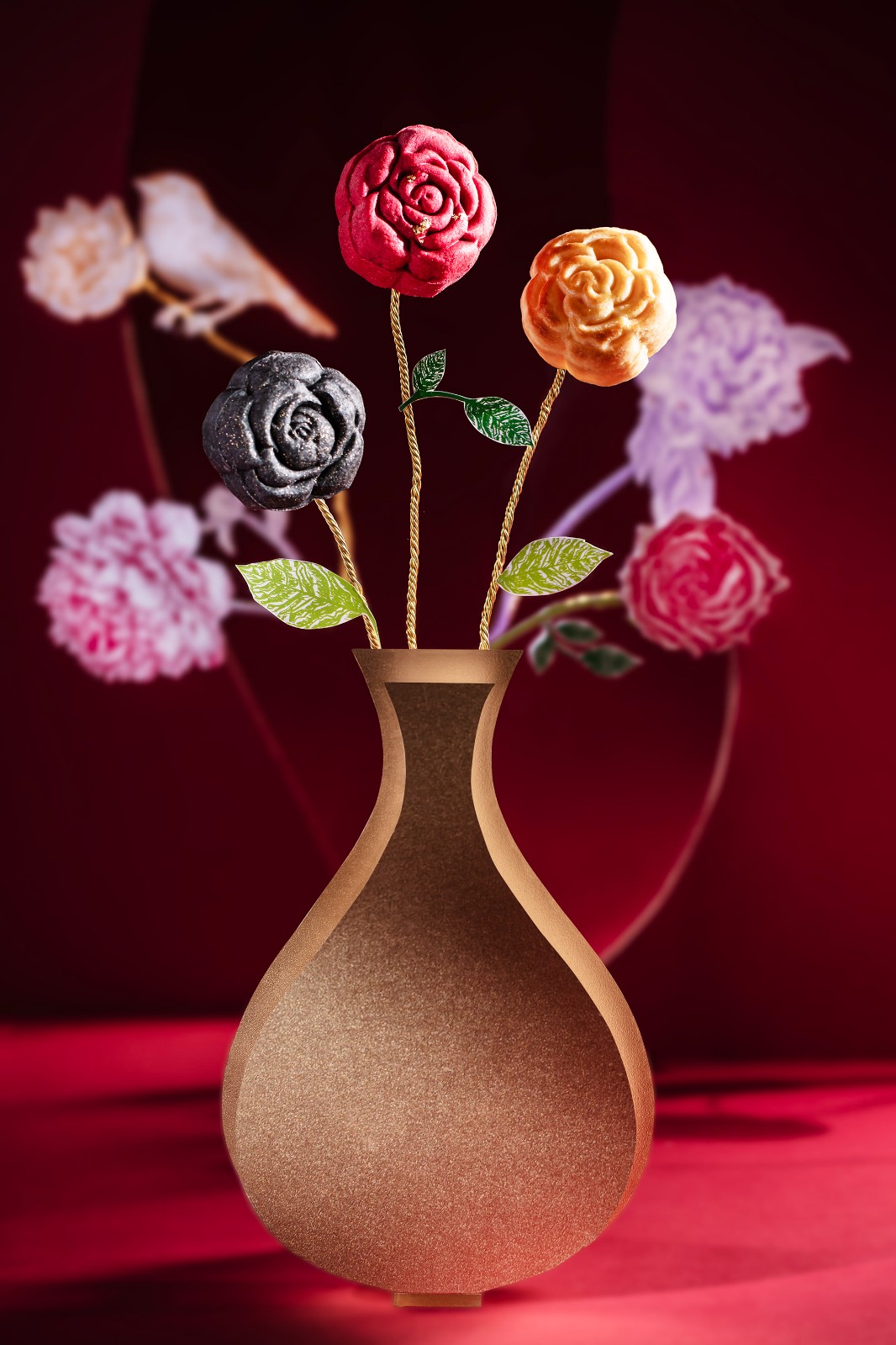 三色月餅禮盒(6個裝)(原價HK$398、預訂優惠價HK$325)精選三款人氣口味,玫瑰奶皇麻糬月餅將玫瑰花香融入綿密奶皇餡中,淡雅芬芳令人回味;金沙奶皇麻糬月餅以鹹蛋黃與奶皇的黃金比例,帶來鹹甜交織的豐富層次;黑芝麻麻糬月餅將傳統芝麻香與煙韌麻糬結合,散發濃郁的芝麻香味。雙黃白蓮蓉月餅(4個裝)(原價HK$448、預訂優惠價HK$368)是孝敬長輩之選,選用純正湘蓮製作出白蓮蓉,口感幼滑細膩,配以經烘烤後金黃的鹹蛋黃,鹹香四溢,令人回味。